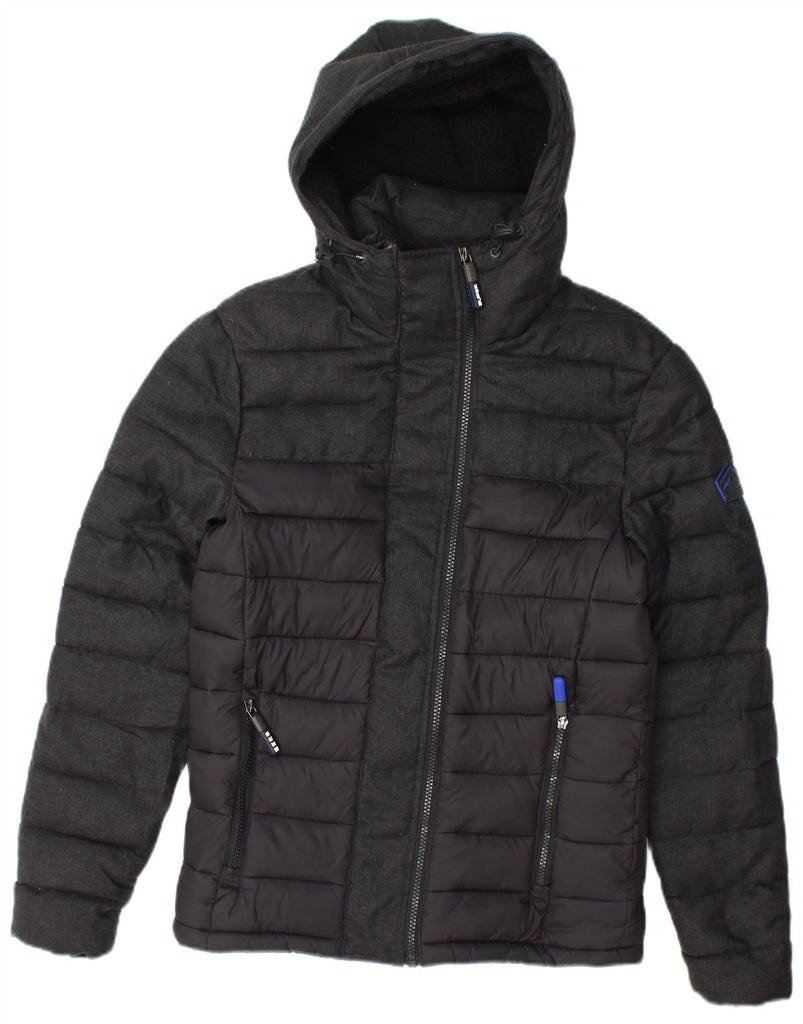 SUPERDRY Mens Hooded Padded Jacket UK 34 XS Grey Colourblock Polyester