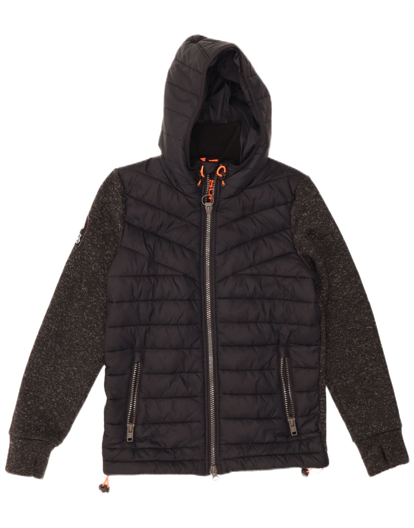 SUPERDRY Veste matelassée à capuche pour hommes UK 38 Nylon color block noir moyen