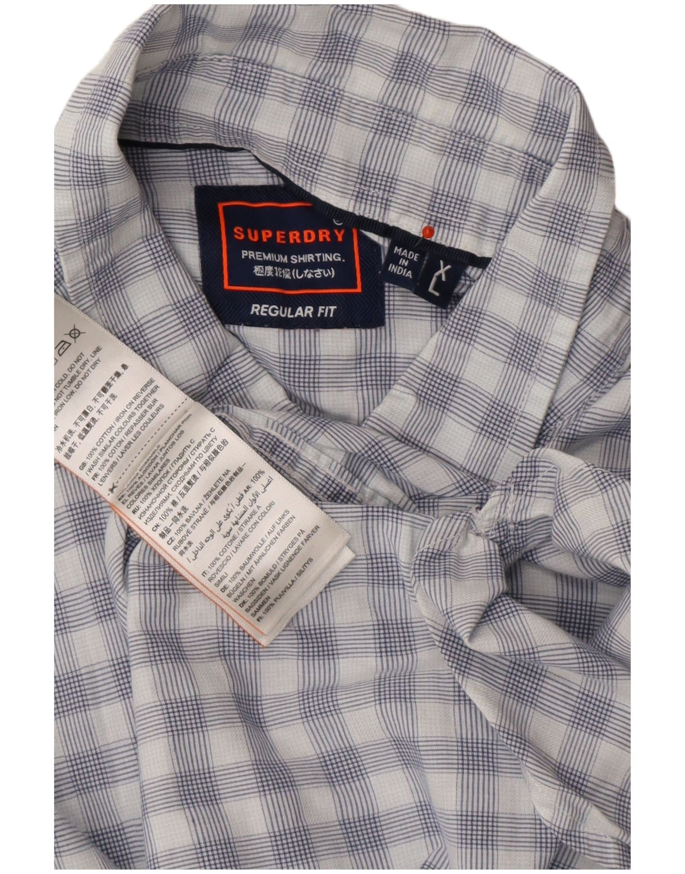 SUPERDRY Chemise à manches courtes coupe classique XL en coton à carreaux bleu