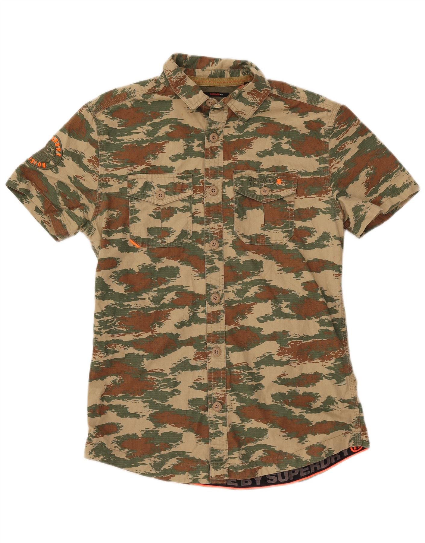 SUPERDRY Chemise Regular Fit à Manches Courtes Homme Petit Kaki Camouflage Coton