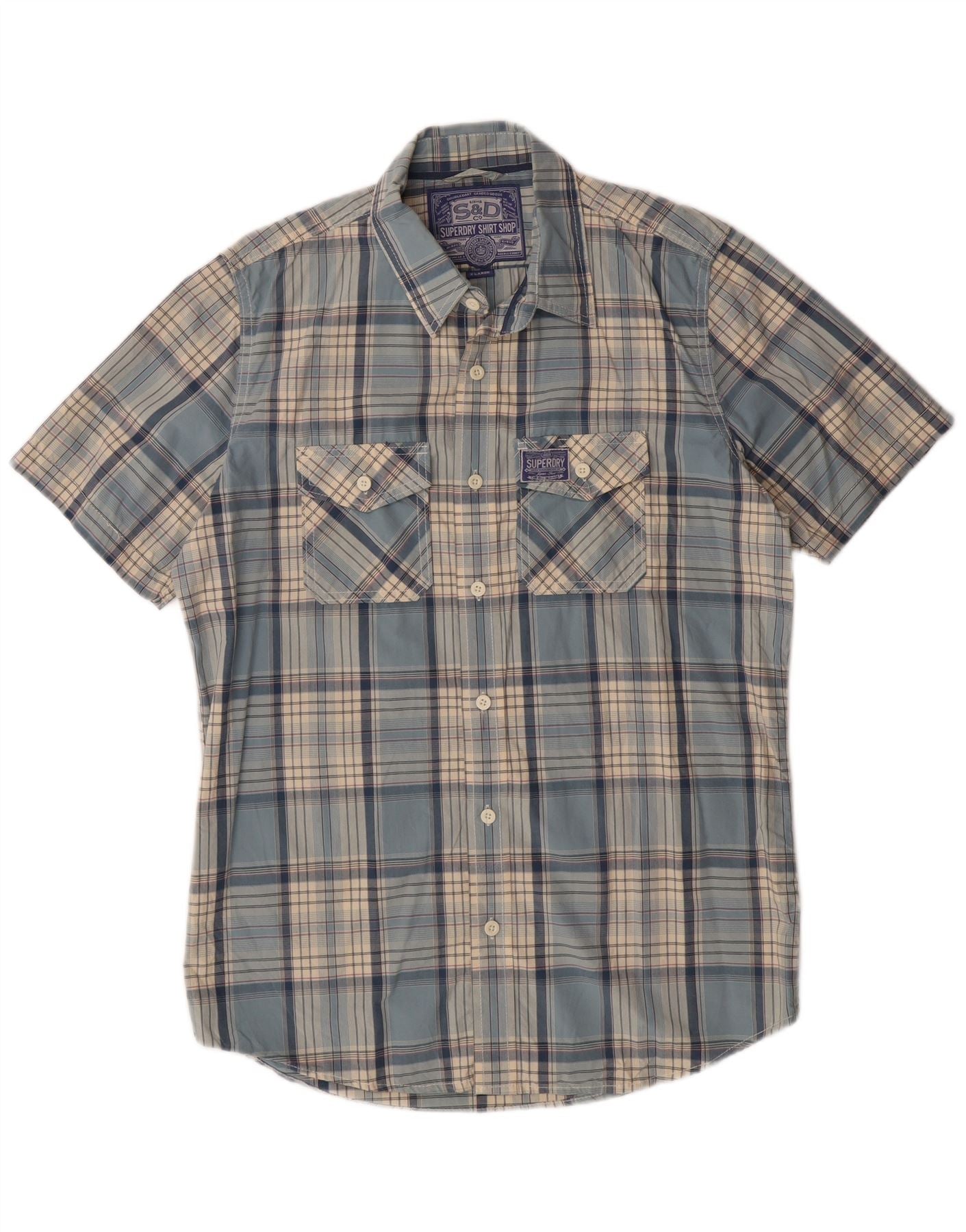 SUPERDRY Chemise à Manches Courtes Homme XL Bleu Carreaux Coton