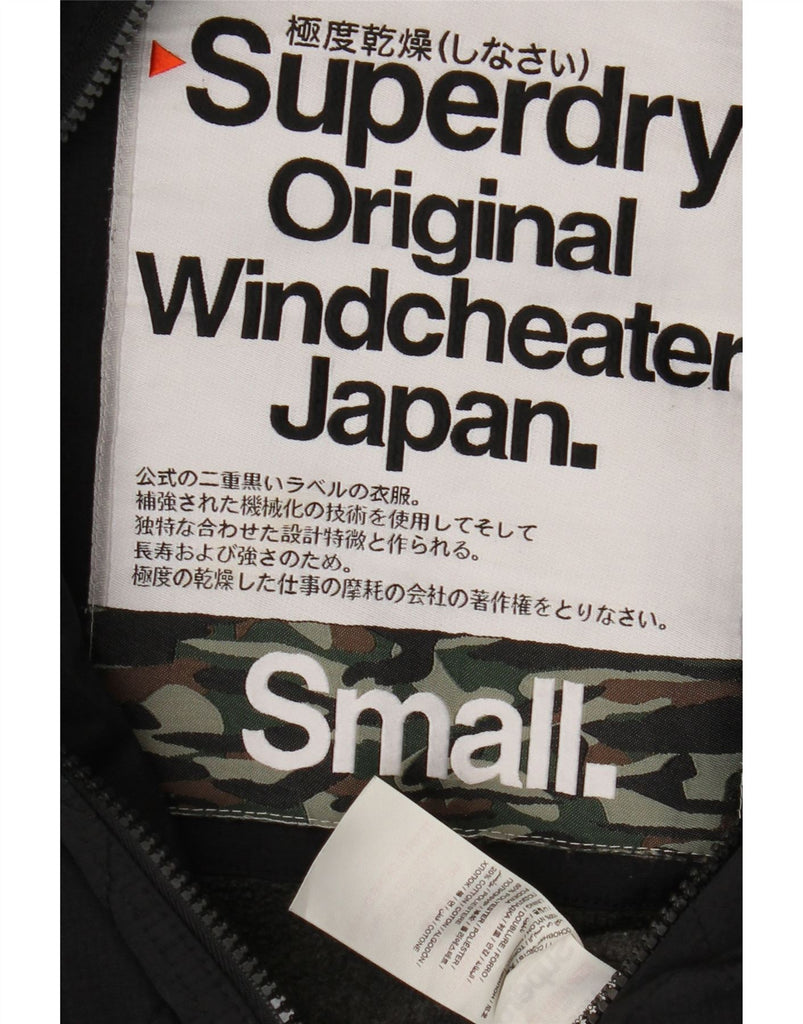 SUPERDRY Mens Windcheater Hooded Windbreaker Jacket UK 36 Small Black