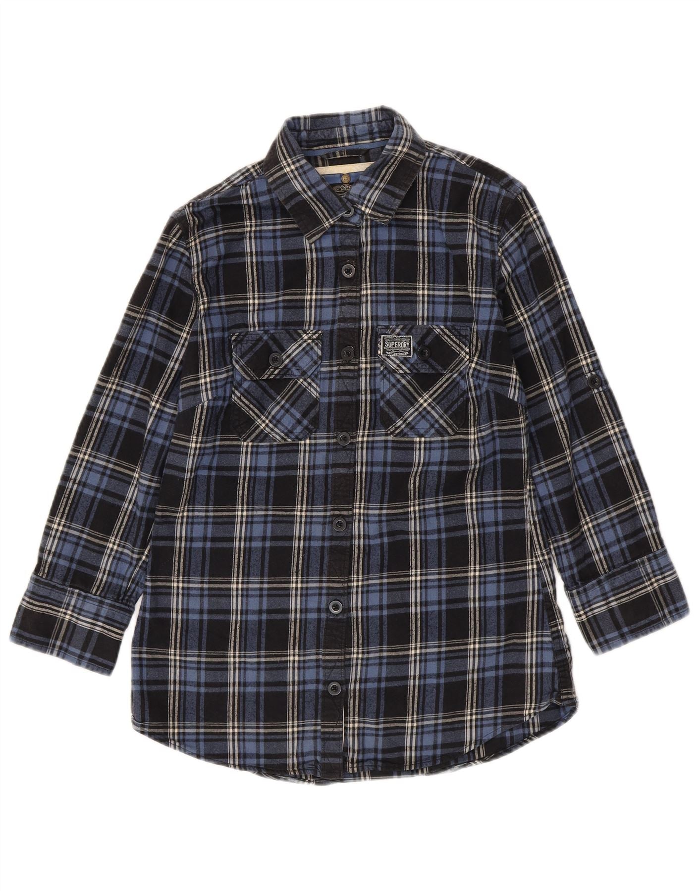 SUPERDRY Chemise en flanelle à manches 3/4 pour femme UK 14 Bleu marine moyen à carreaux