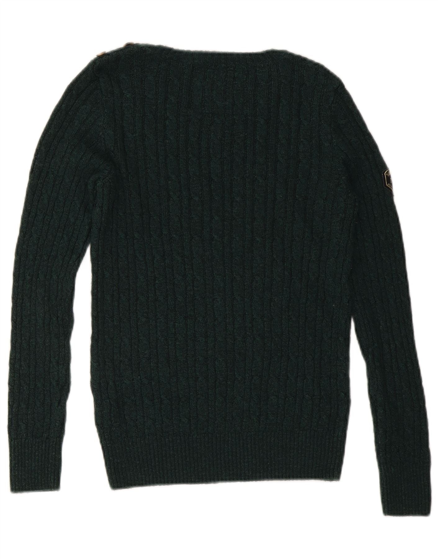 SUPERDRY Pull col bateau pour femme UK 10 Small Vert Acrylique