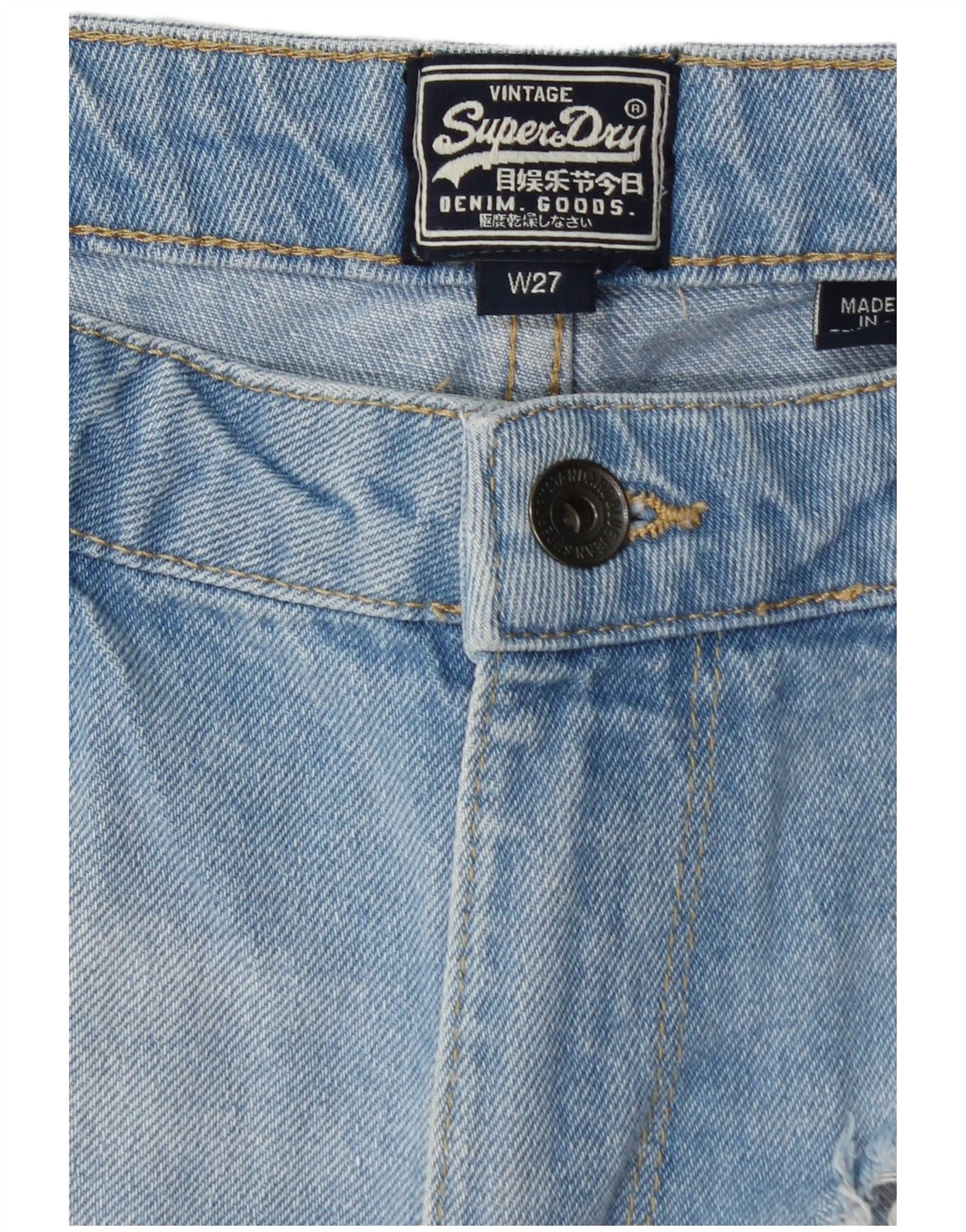 SUPERDRY Short en jean graphique vieilli W27 pour femme en coton bleu petit
