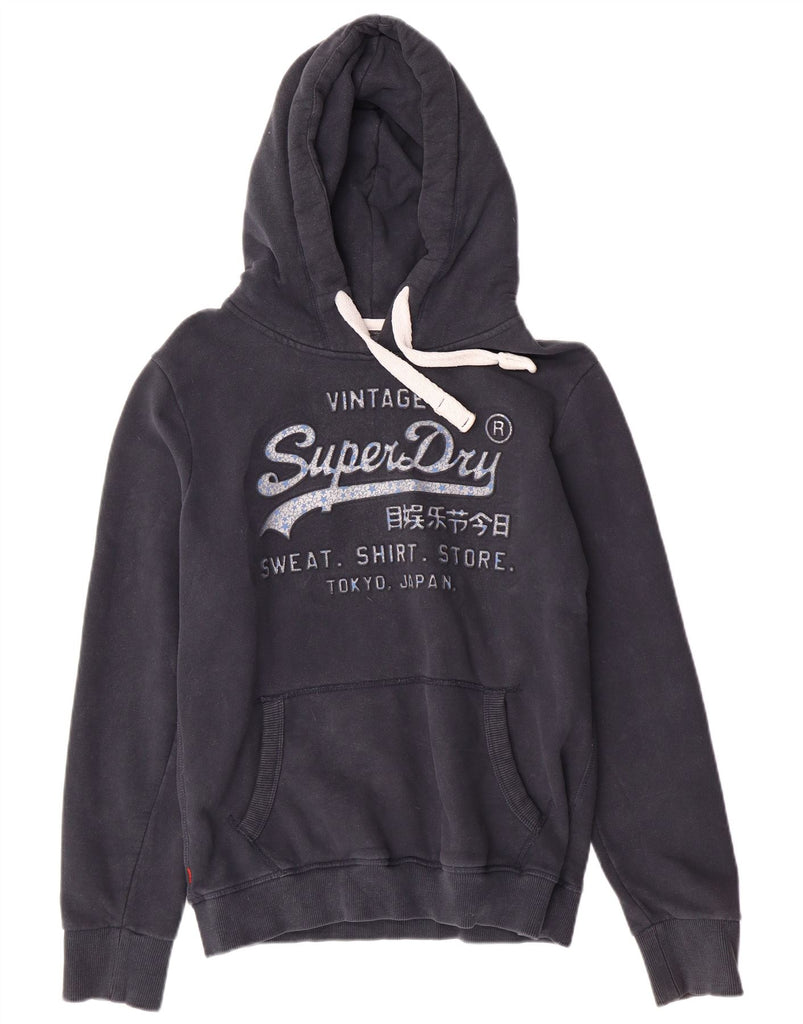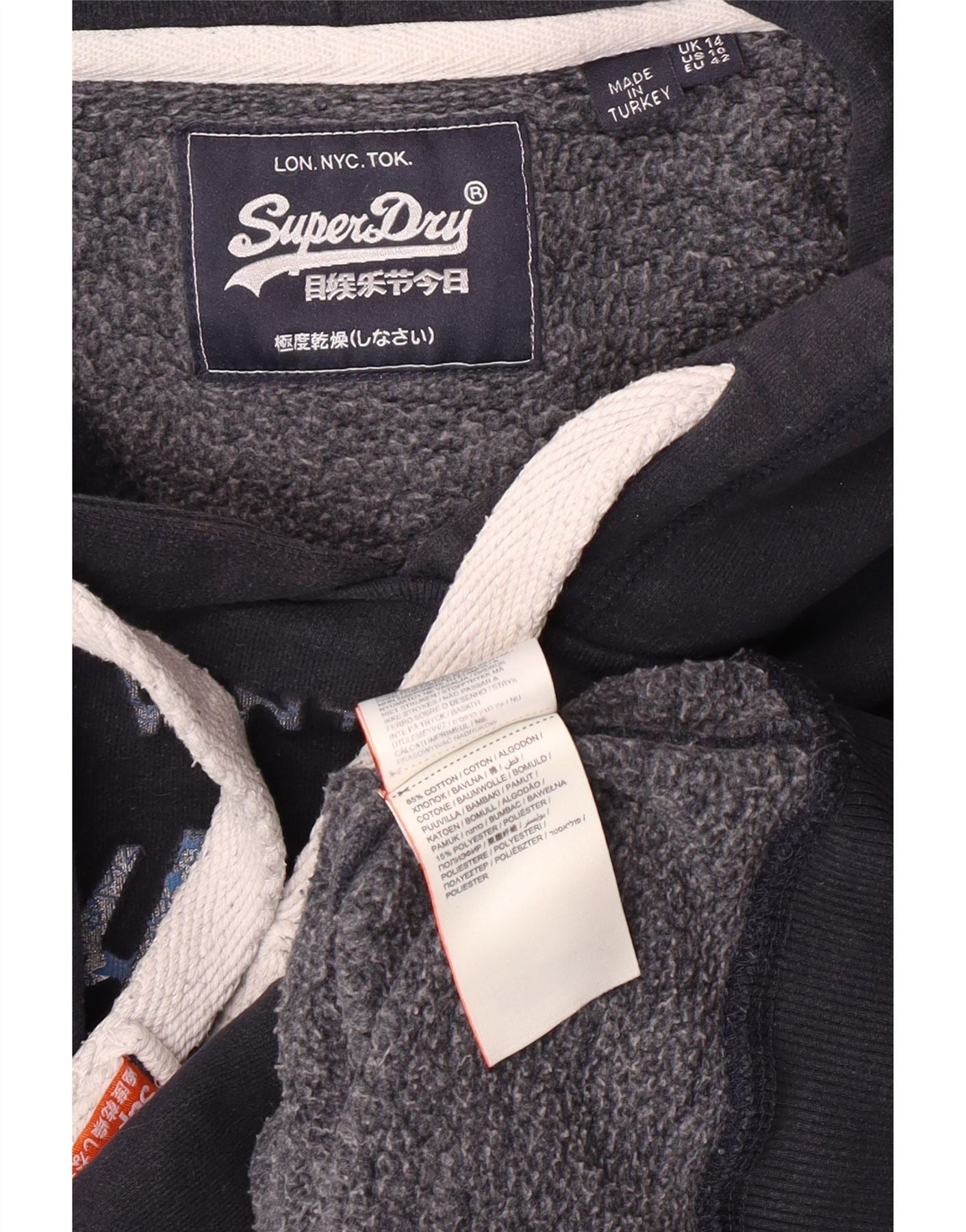 SUPERDRY Pull à capuche graphique pour femme UK 14 Large Bleu marine Coton