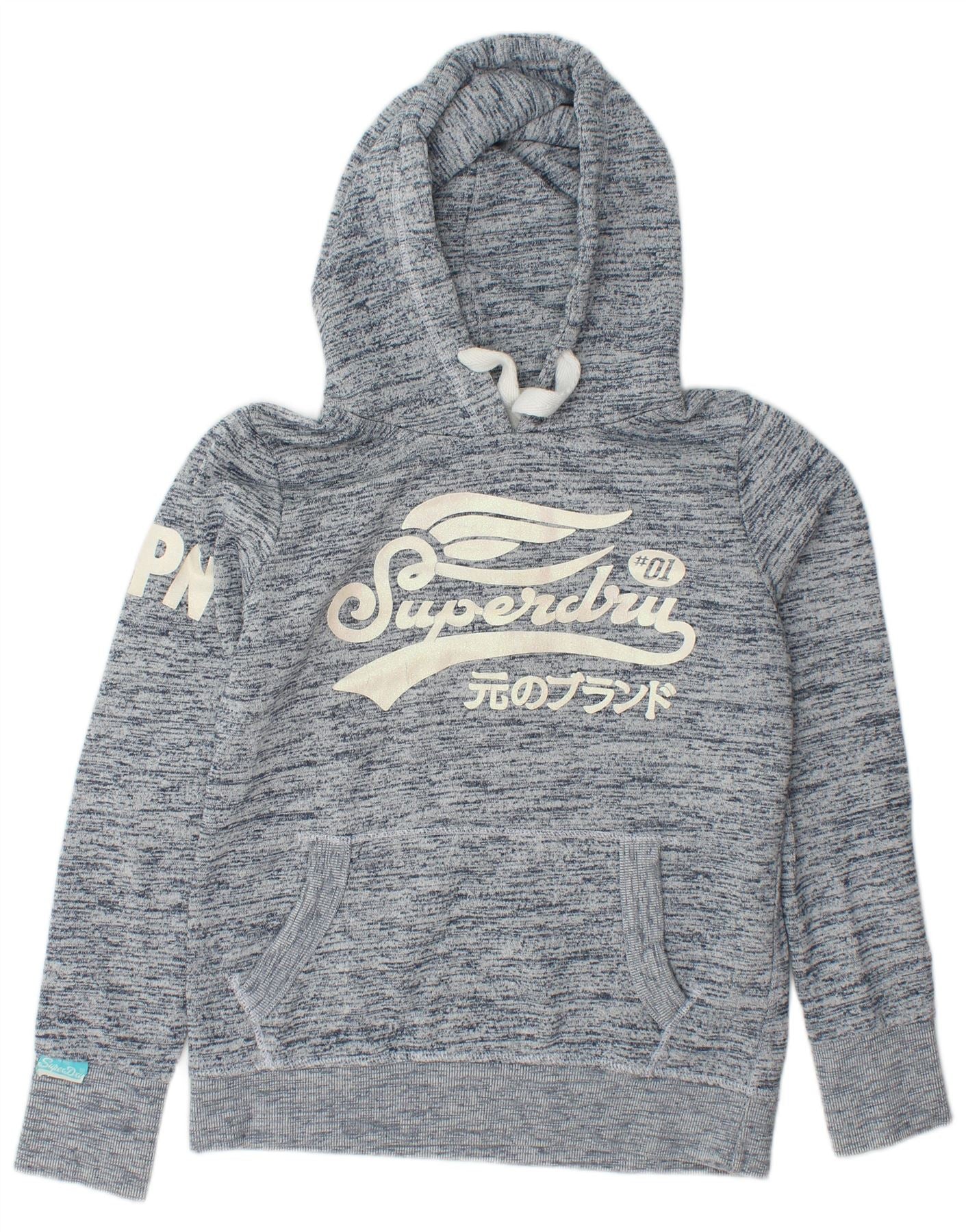 Home > Superdry > aux femmes > Sweats à capuche > SUPERDRY Pull à capuche graphique pour femme UK 16 Grand coton moucheté bleu marine