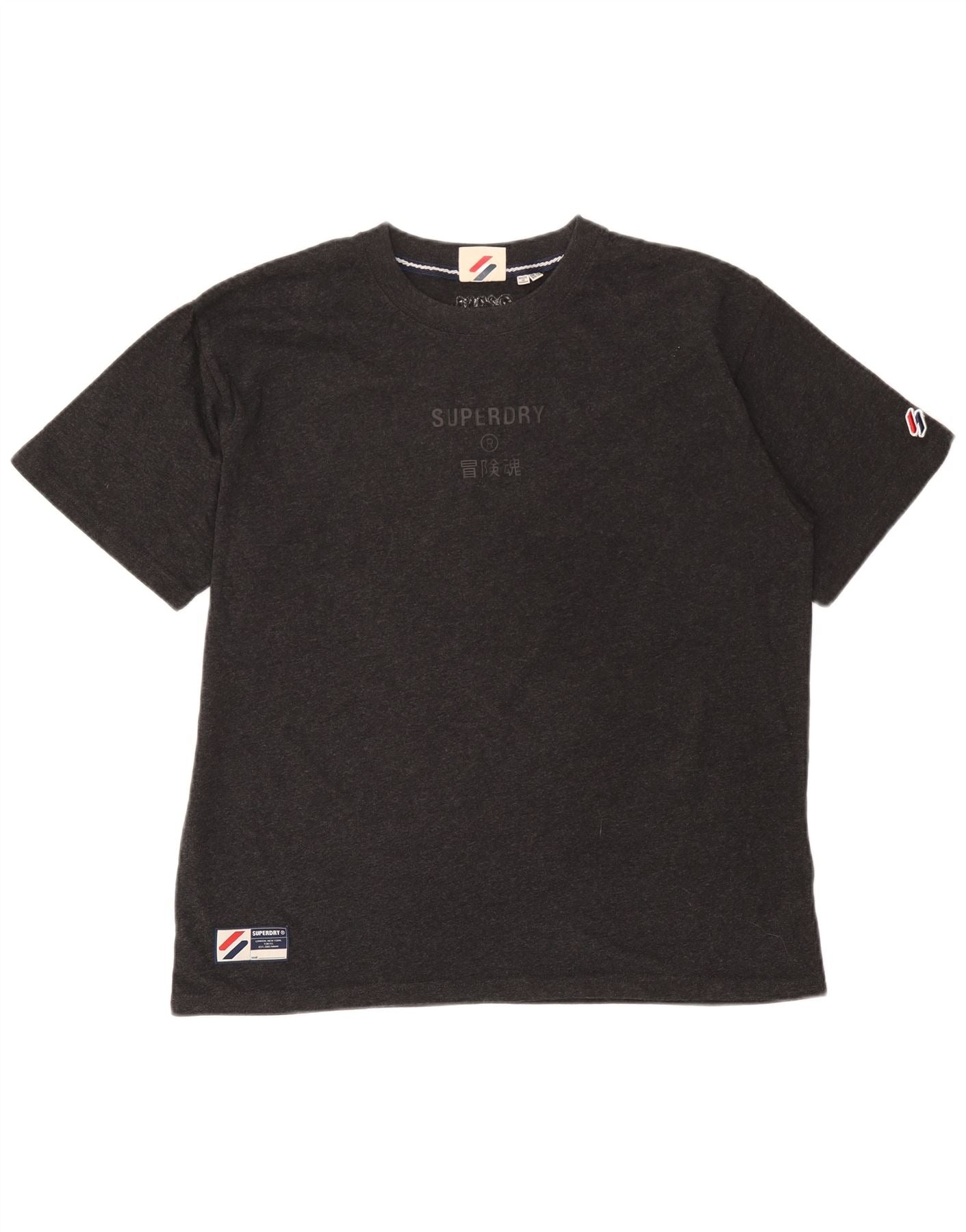 Superdry T-shirt graphique pour femme UK 14 Large Gris Coton