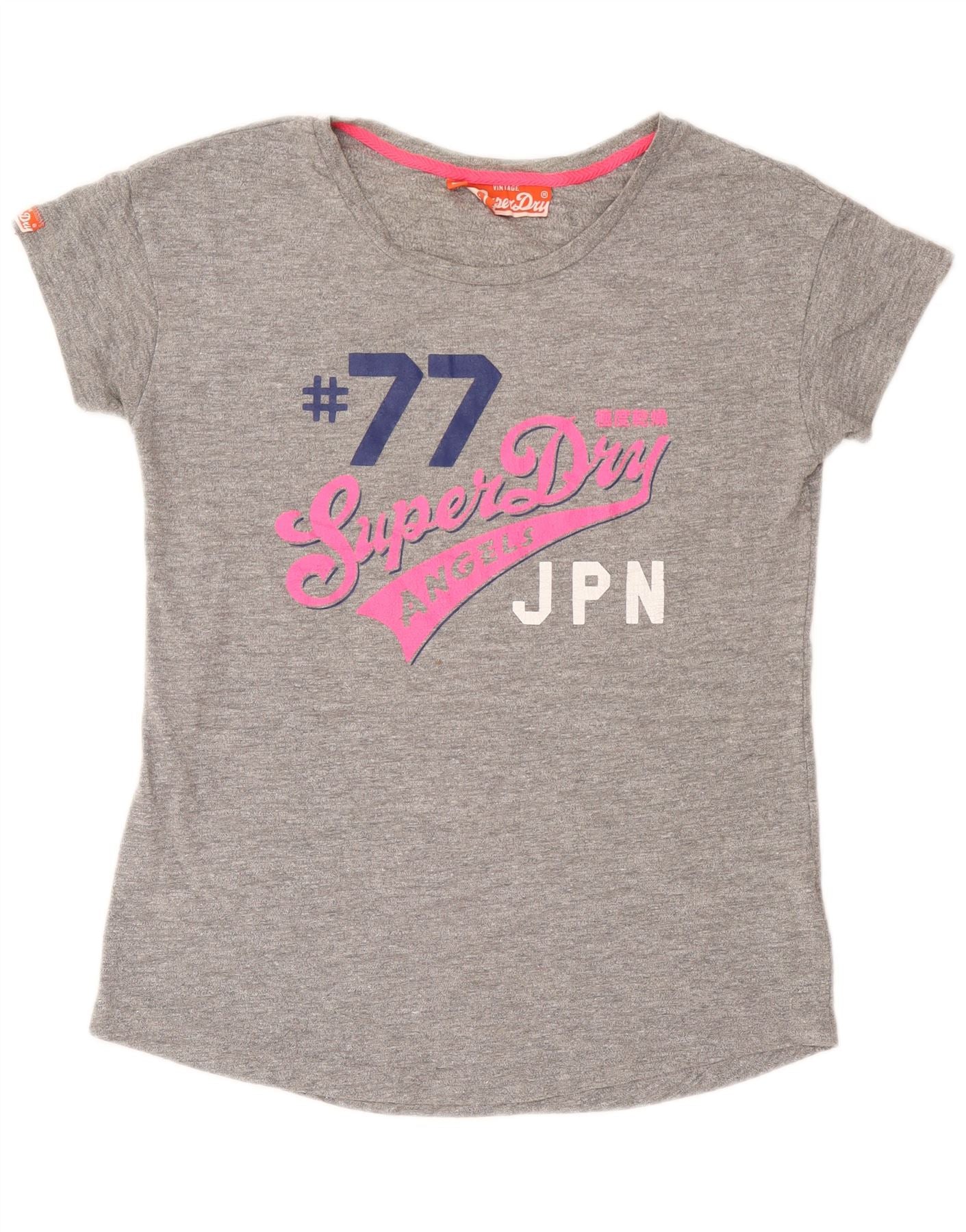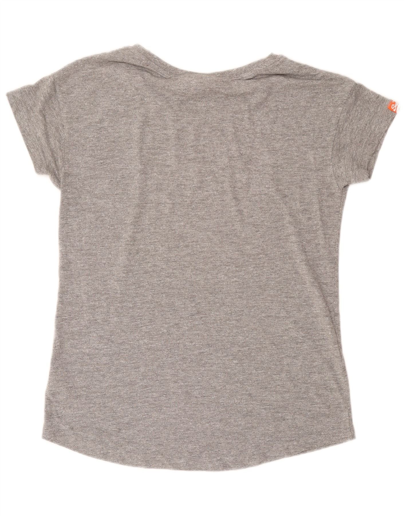 Superdry T-shirt graphique pour femme UK 14 Large Gris Coton