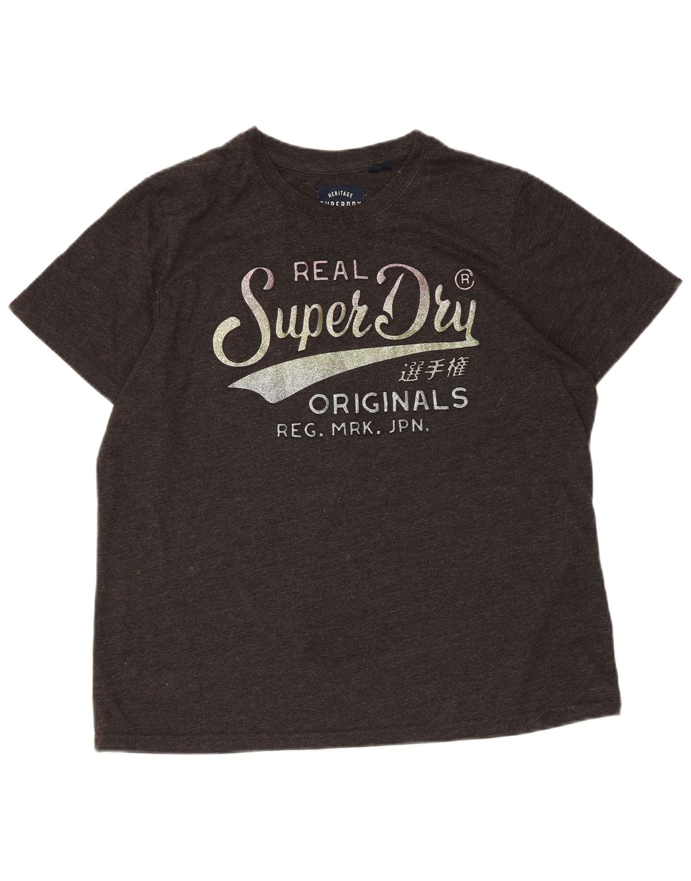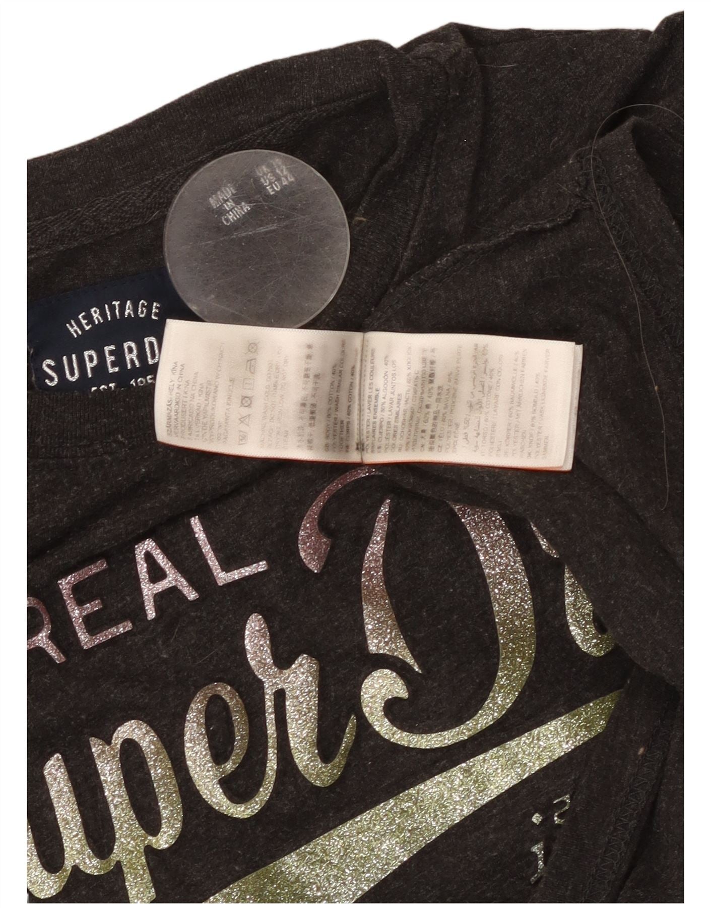 SUPERDRY T-Shirt Graphique Femme UK 16 Large Gris Moucheté Coton
