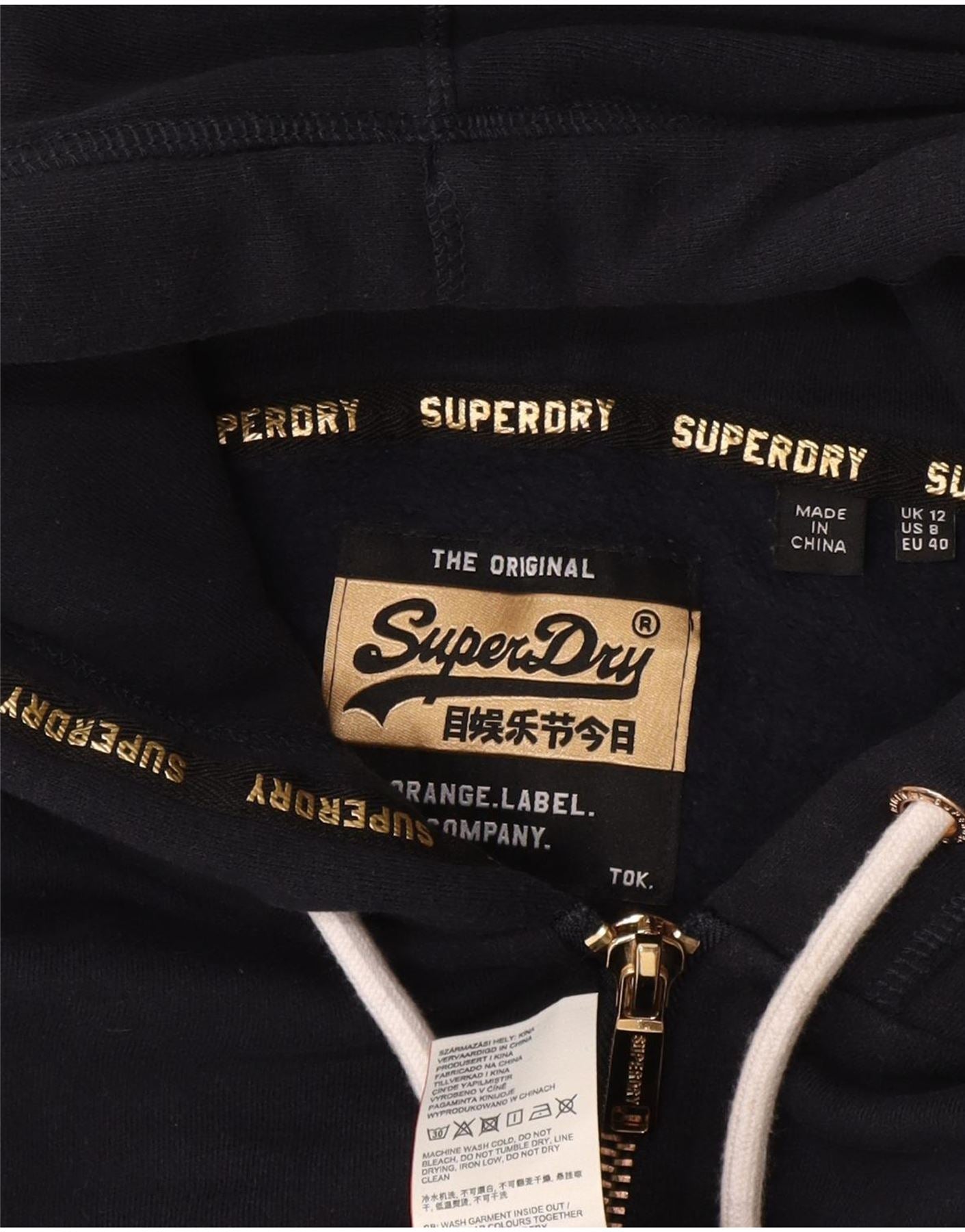 Superdry Pull à capuche zippé graphique pour femme UK 12 Bleu marine moyen Coton