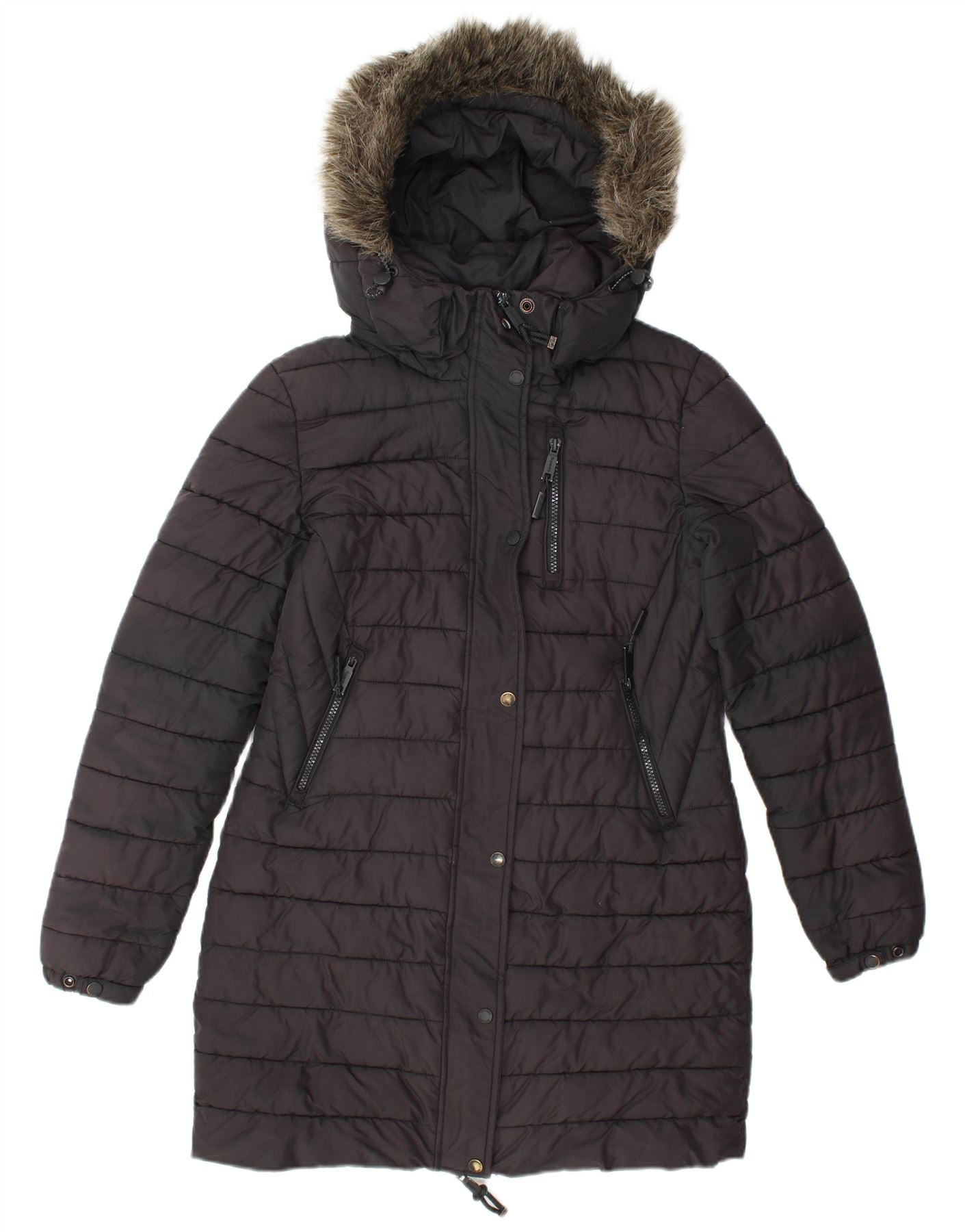 SUPERDRY Manteau rembourré à capuche pour femme UK 10 Small Noir Polyester