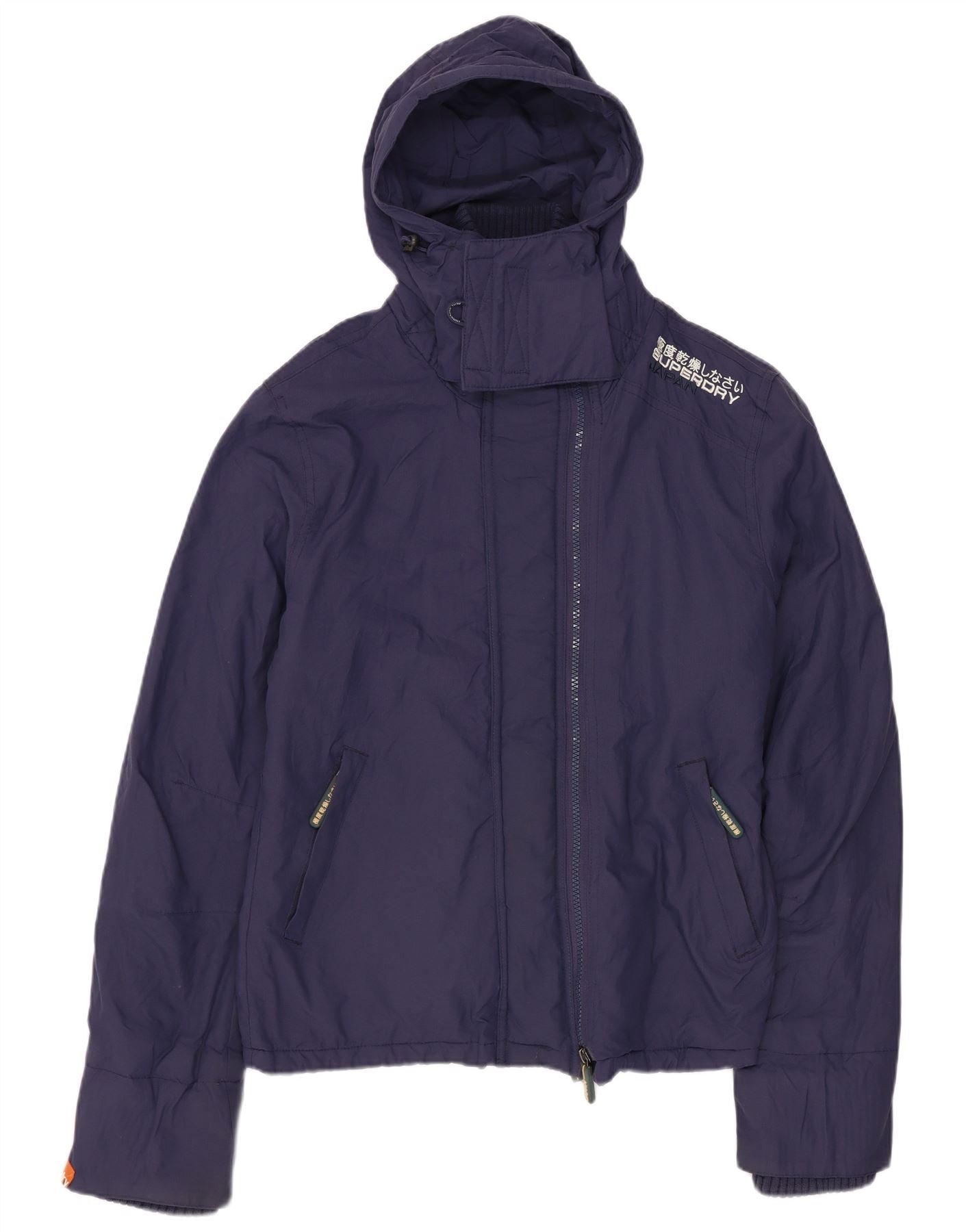 SUPERDRY Veste coupe-vent à capuche pour femme UK 14 Medium Navy Blue Nylon