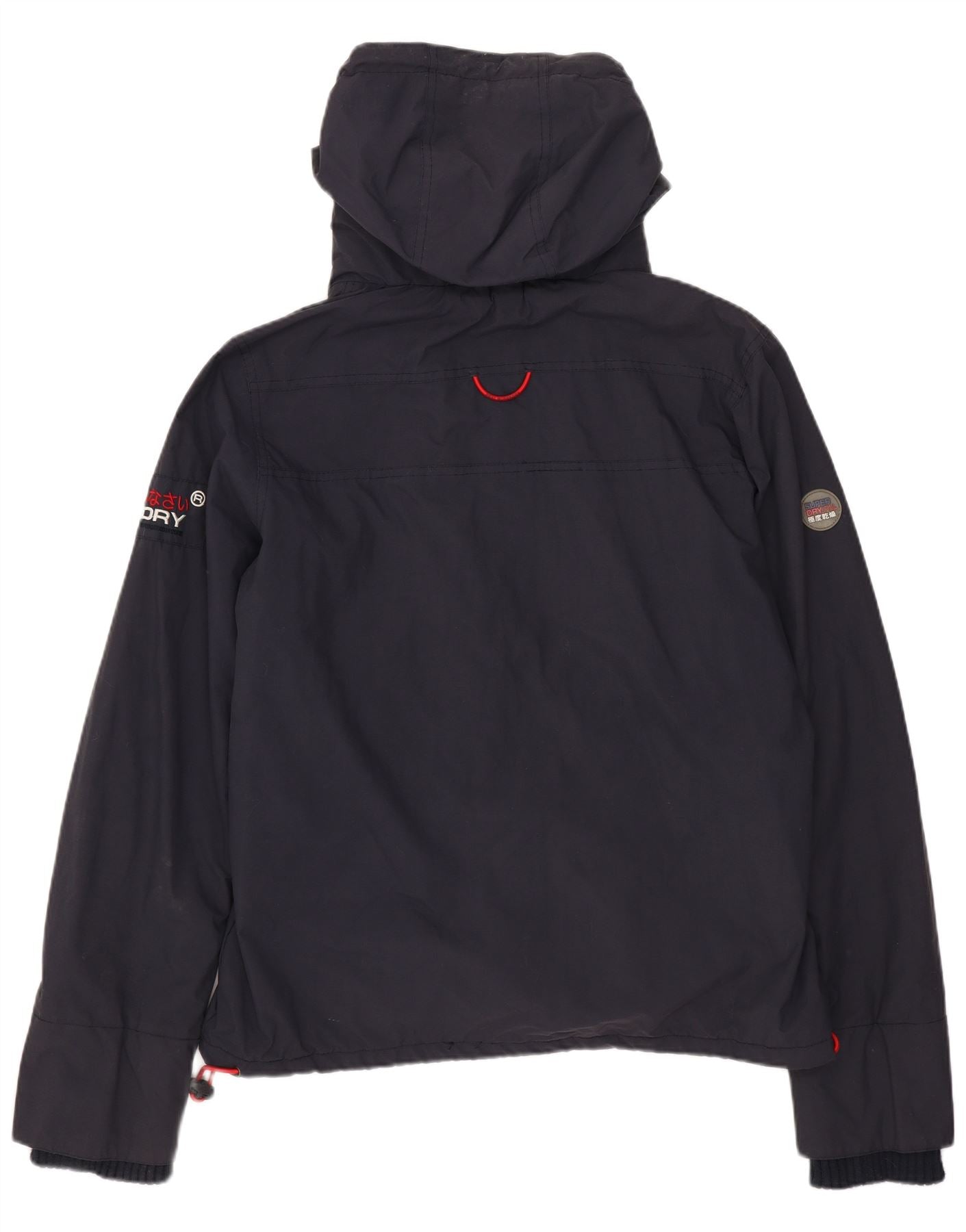 Superdry Veste coupe-vent à capuche pour femme UK 16 Large Bleu Marine Nylon
