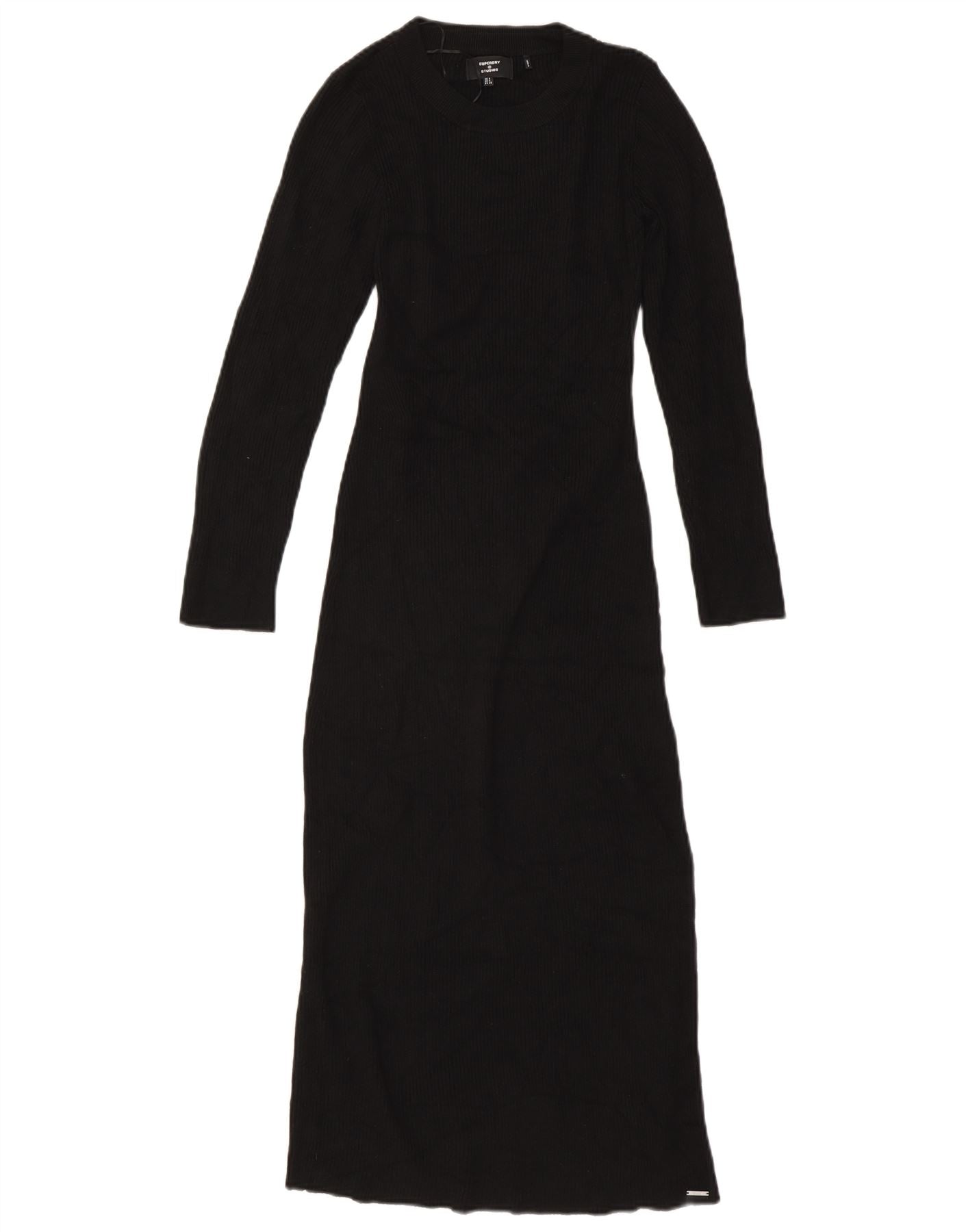 SUPERDRY Femme Maxi Robe Pull UK 8 Petit Noir Viscose