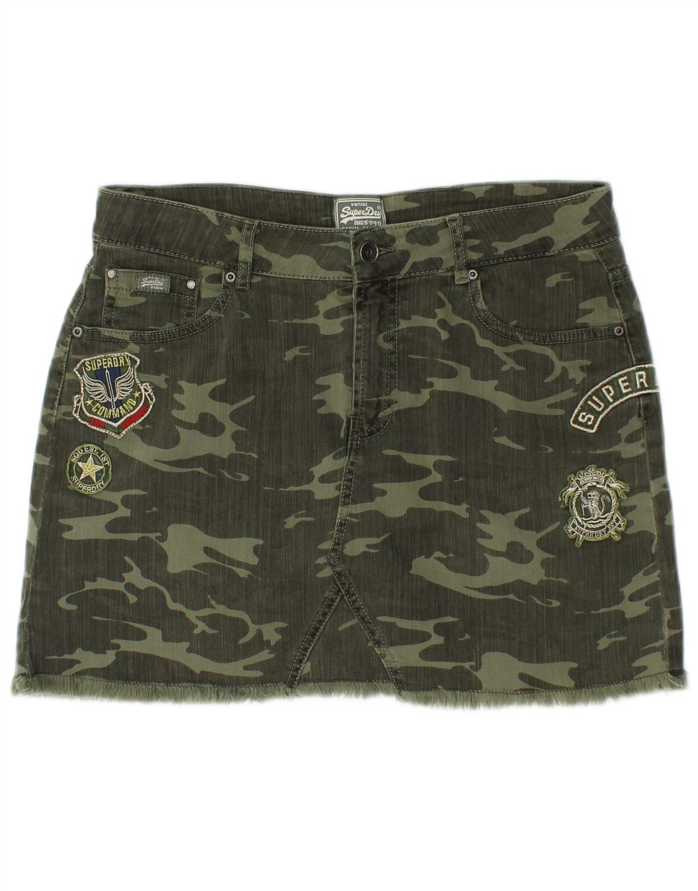 SUPERDRY Femme Mini Jupe En Jean Medium W30 Kaki Camouflage