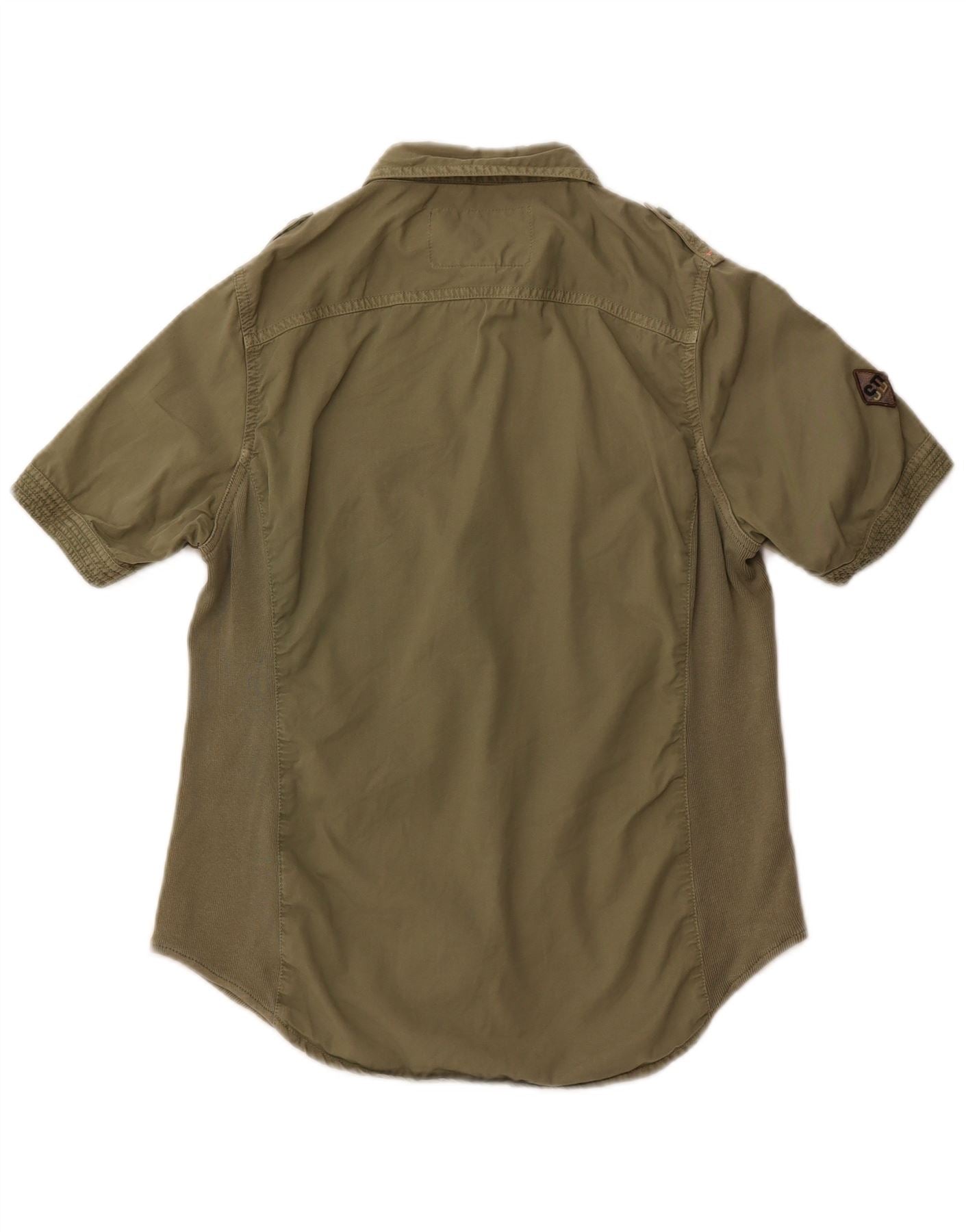 SUPERDRY Chemise militaire à manches courtes pour femme UK 14 Large Kaki Coton