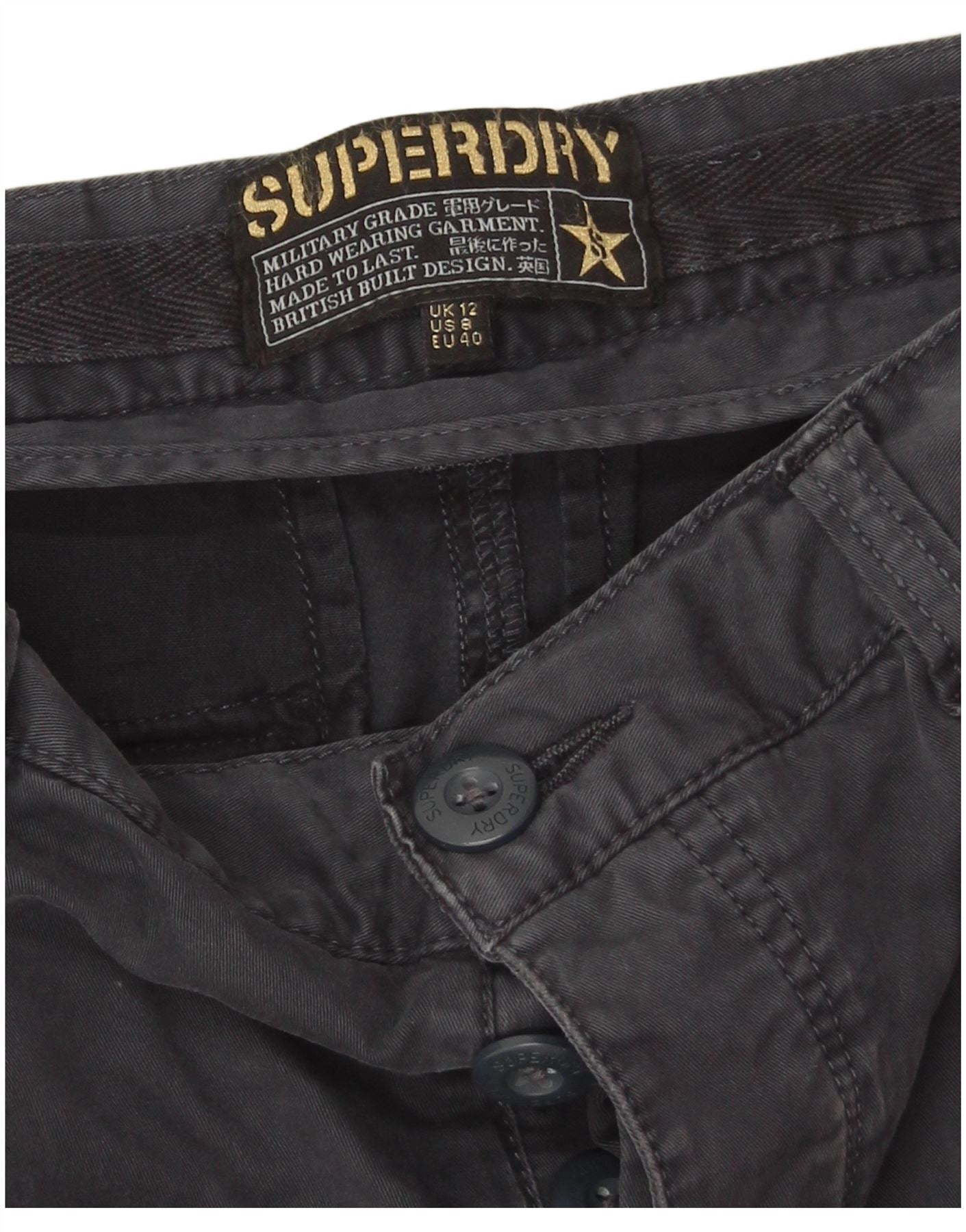 Superdry Pantalon cargo slim pour femme UK 12 Medium W32 L30 Bleu marine Coton