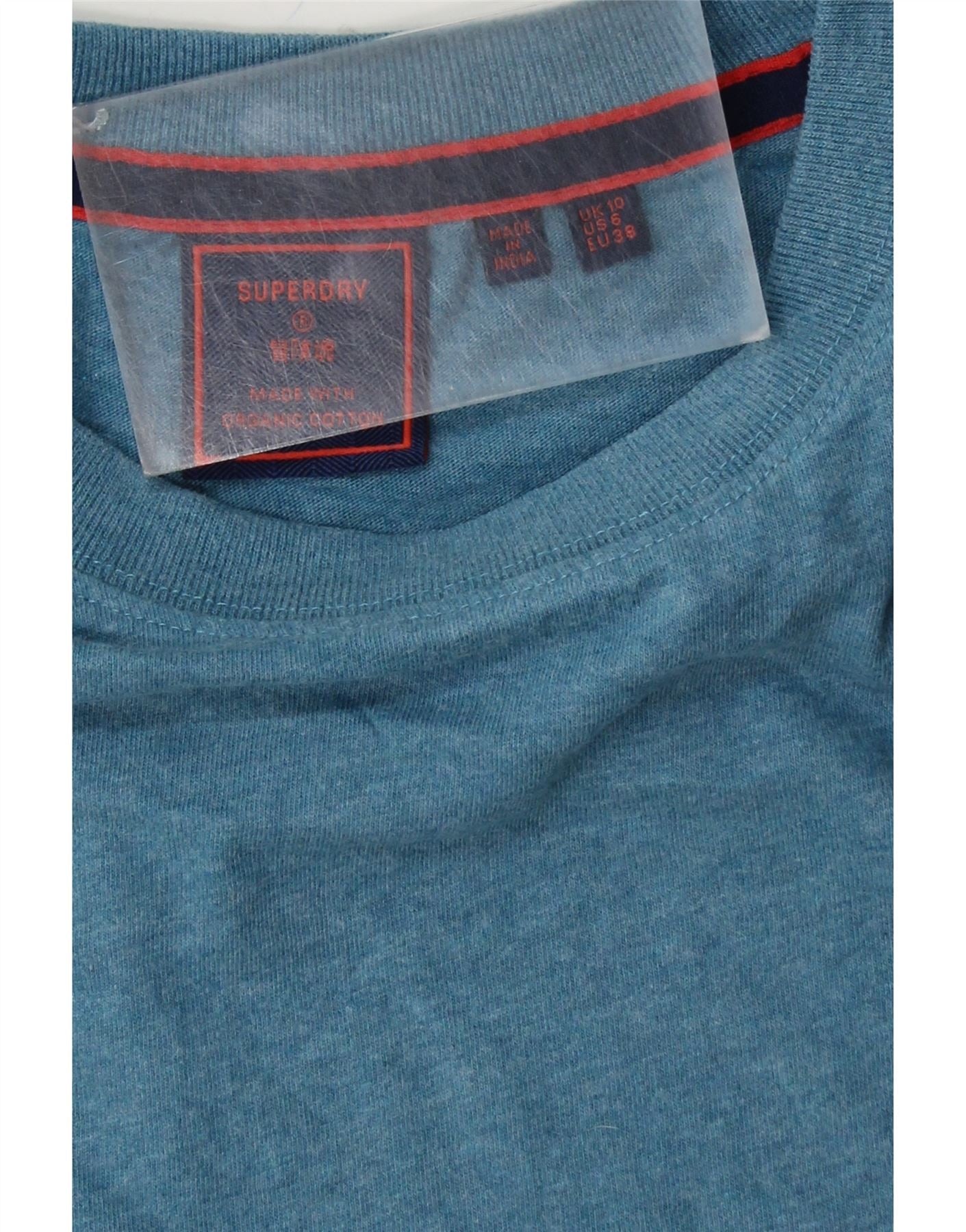 SUPERDRY T-Shirt Femme Top UK 10 Small Bleu Coton