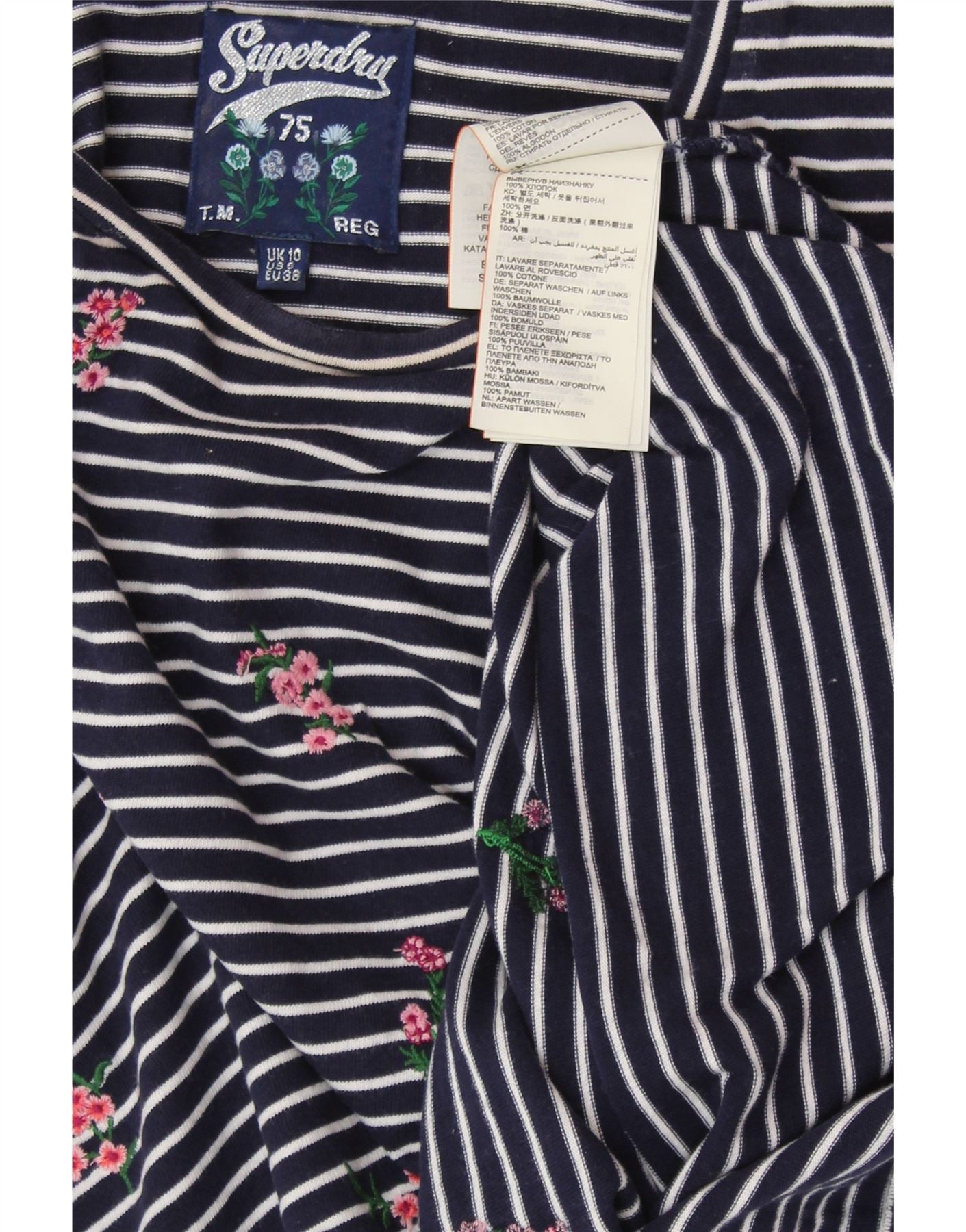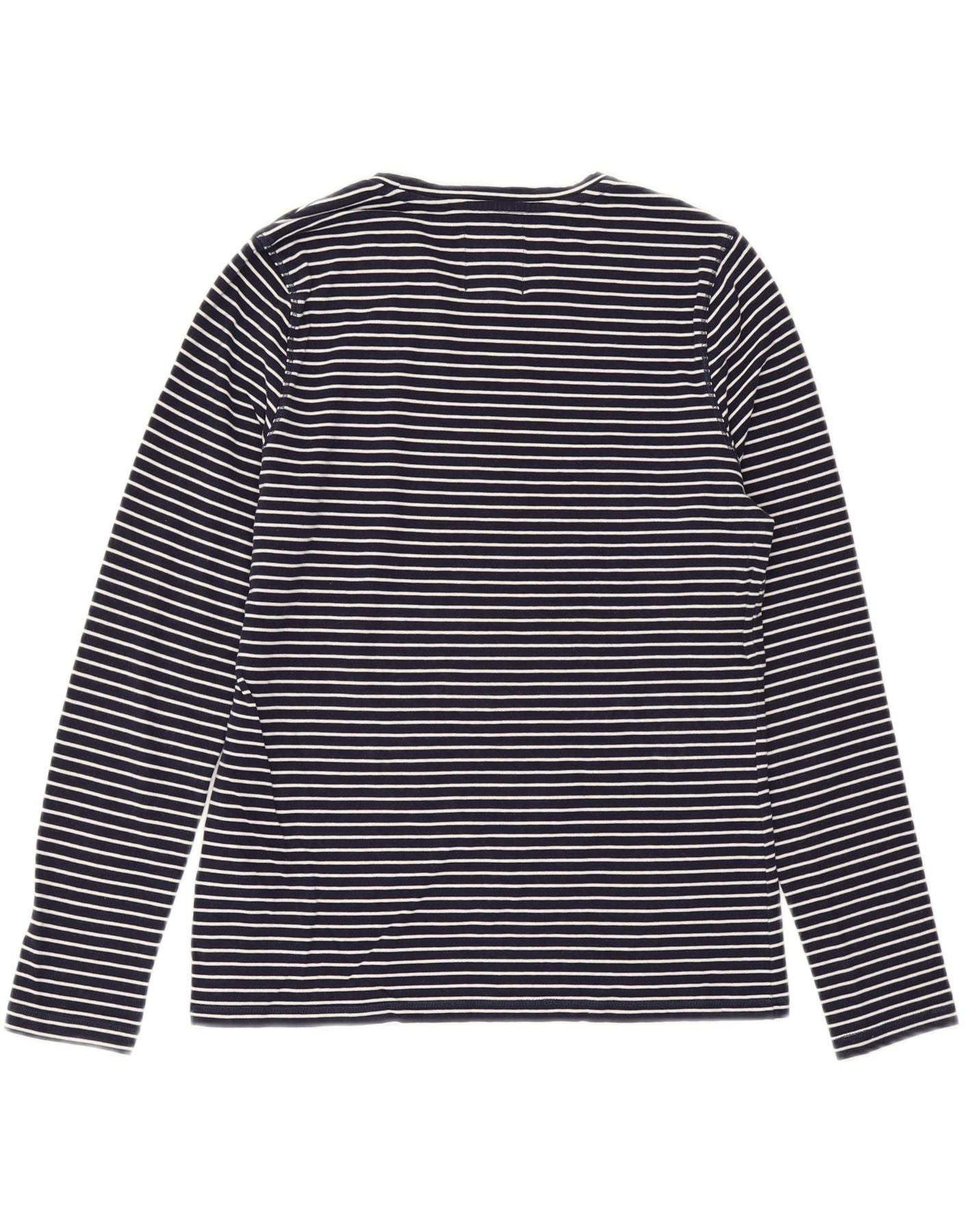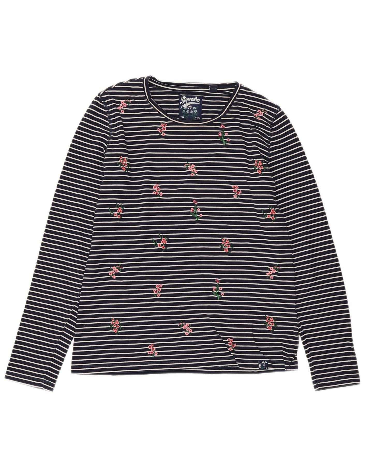 SUPERDRY Top Femme Manches Longues UK 10 Small Bleu Marine Rayé Coton