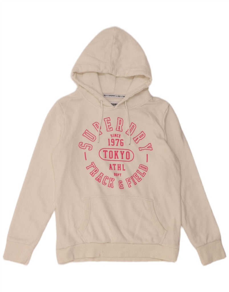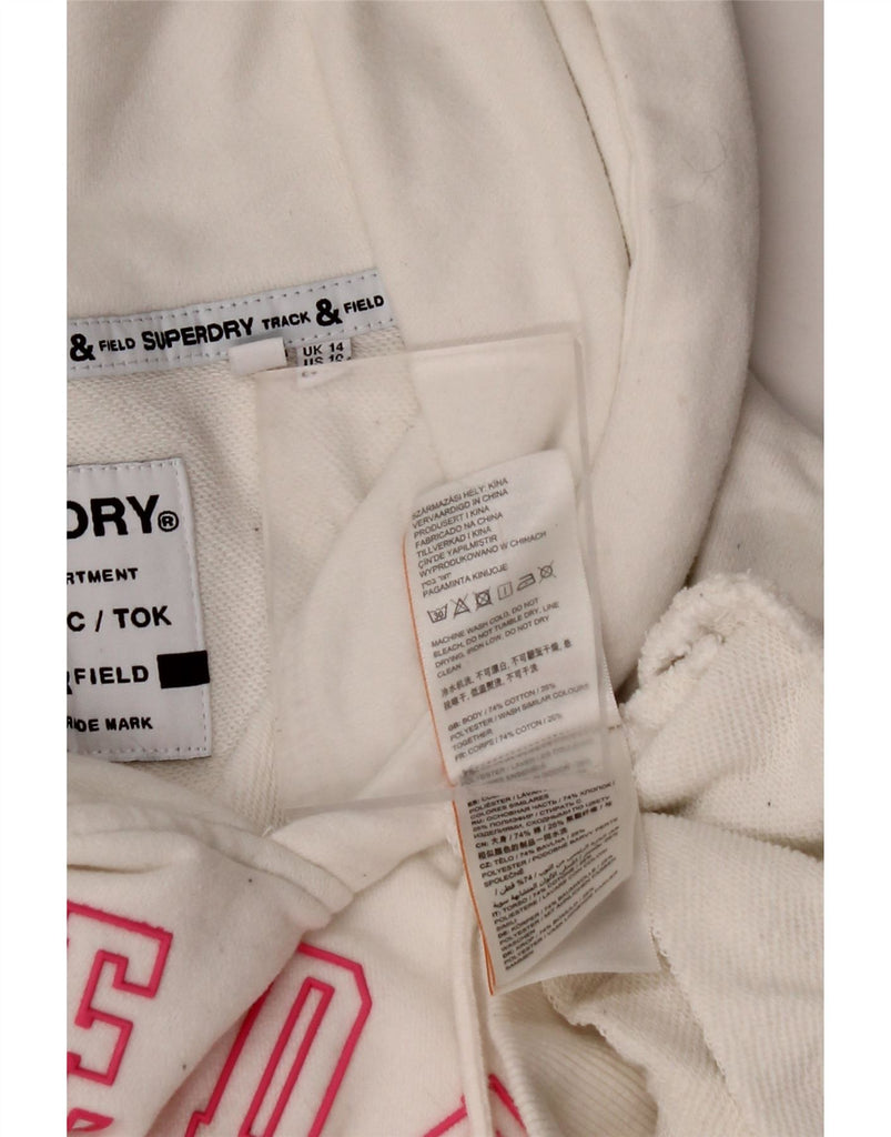 SUPERDRY Pull à capuche graphique Track & Field pour femme UK 14 Large Blanc cassé