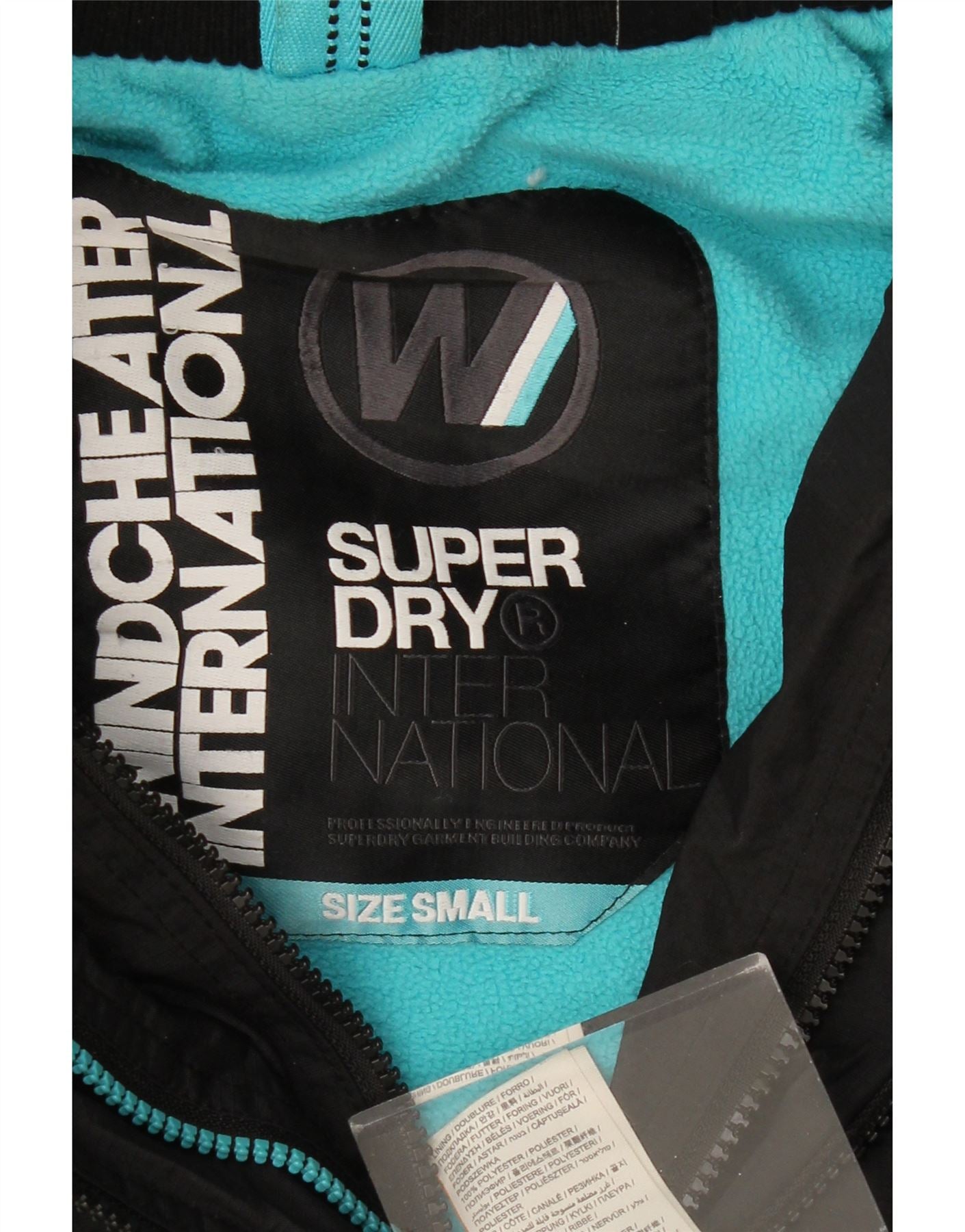 - Description de l'IA : Cette veste coupe-vent Superdry pour femme est confectionnée en polyester tissé noir durable. Il offre une finition lisse et imperméable. Ce modèle à capuche présente un col montant et des manches longues. Une fermeture éclair complète assure un port sécurisé. Les poches zippées offrent un rangement pratique. L'intérieur présente une doublure bleue contrastante. La subtile marque Superdry accentue le design. Sa coupe régulière offre un mouvement confortable. Cette veste coupe-vent est idéale pour les activités de plein air.