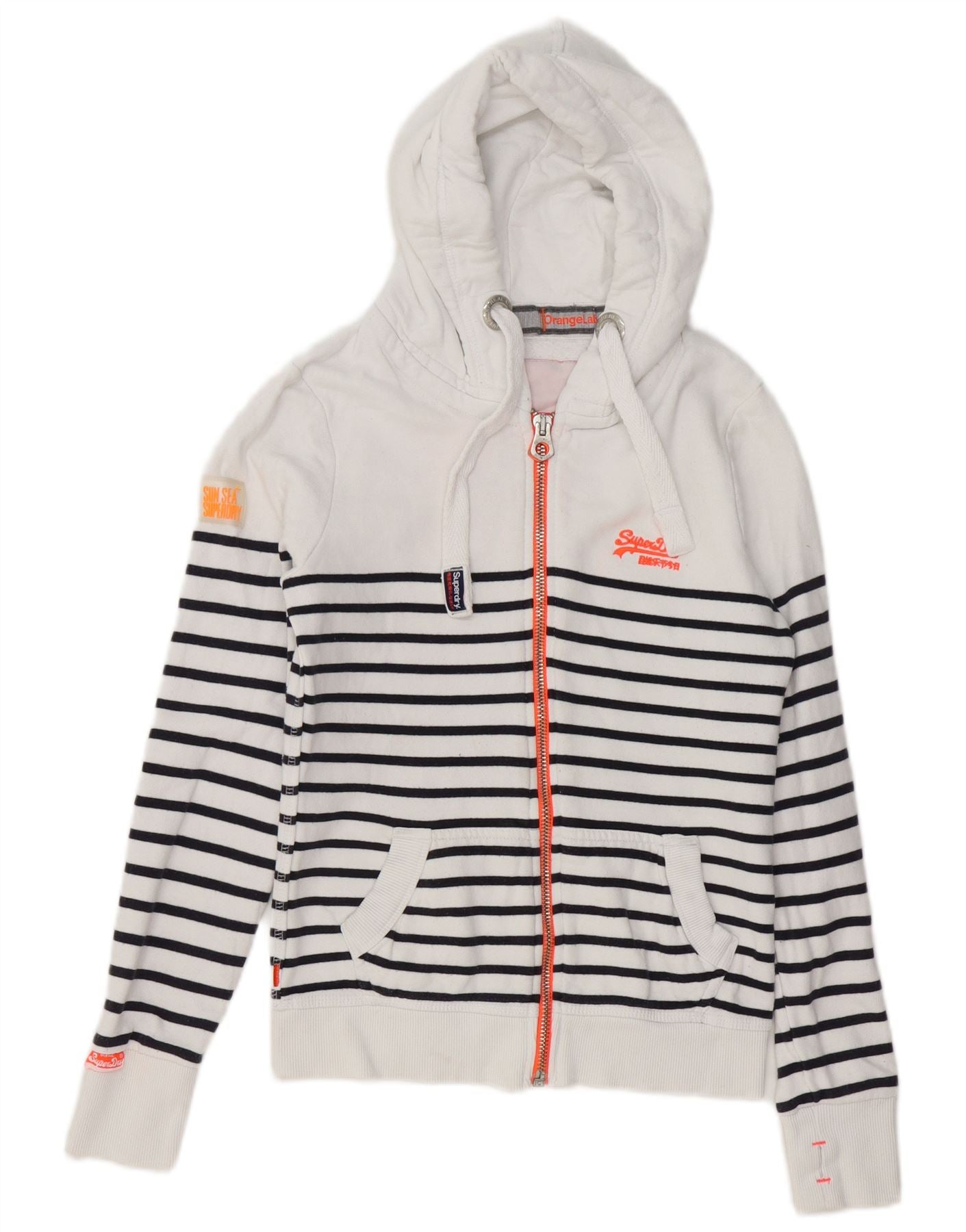 Home > Superdry > aux femmes > Sweats à capuche > SUPERDRY Pull à capuche zippé pour femme UK 6 XS Coton rayé blanc