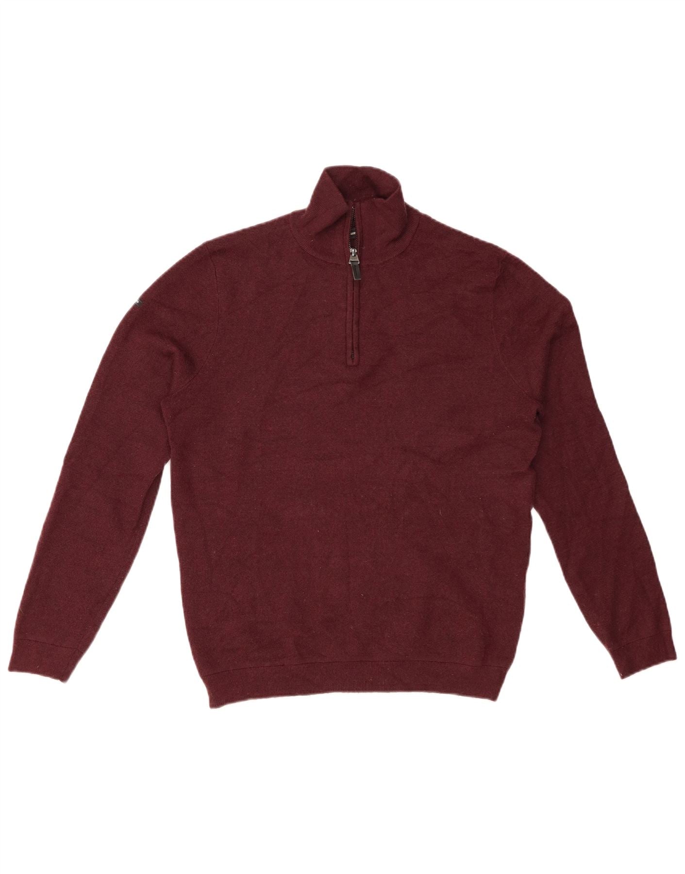 SUPERDRY Pull col zippé pour femme UK 16 Large Laine mérinos bordeaux