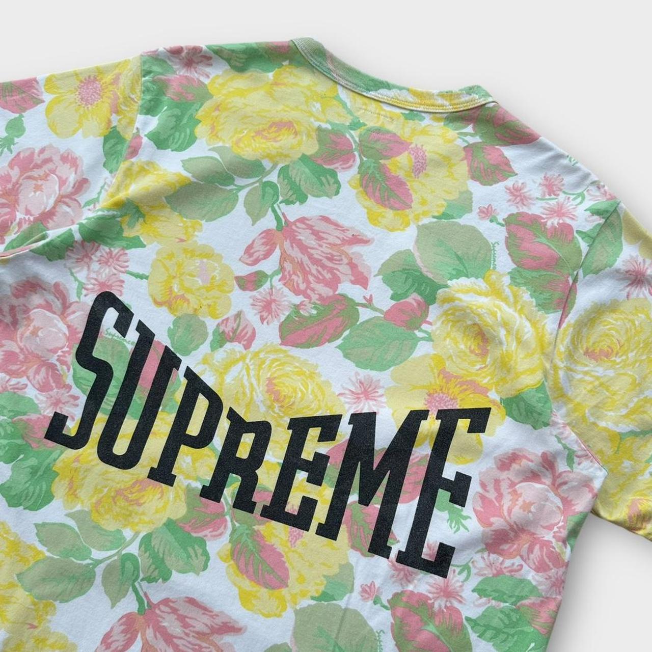 T-shirt graphique à fleurs imprimé suprême printemps-été 2018 avec épeler dans le dos