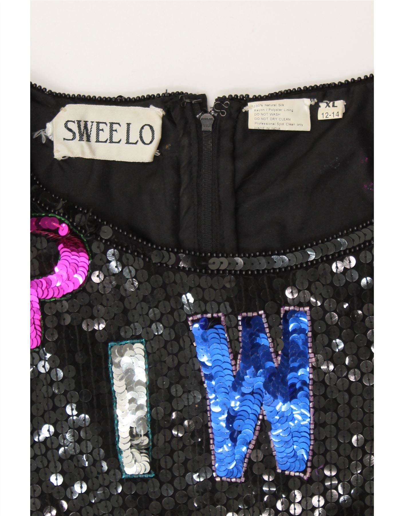 SWEELO Robe fourreau graphique pour femme UK 18 XL Soie noire