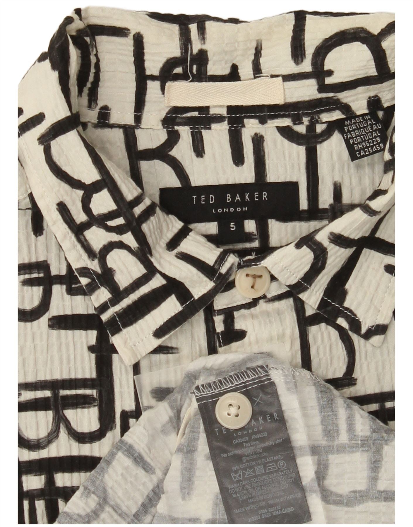 TED BAKER Chemise graphique à manches courtes pour homme Taille 5 XL Coton blanc