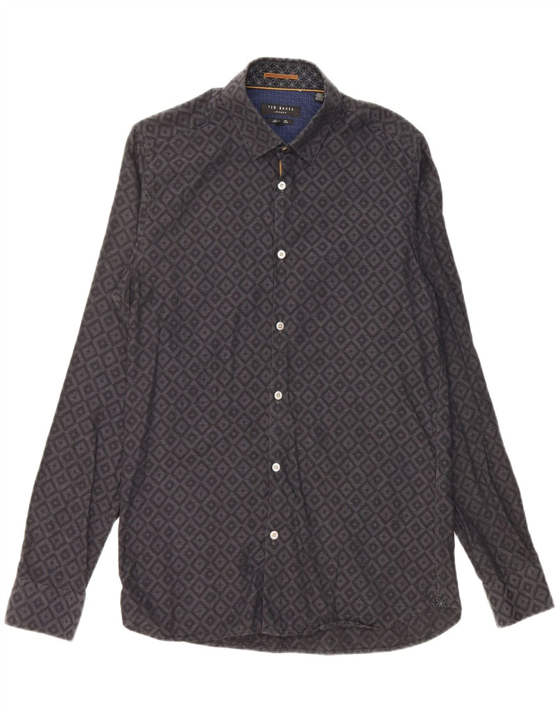 TED BAKER Mens Modern Fit Shirt Size 15 1/2 Medium Black Geometric Cotton