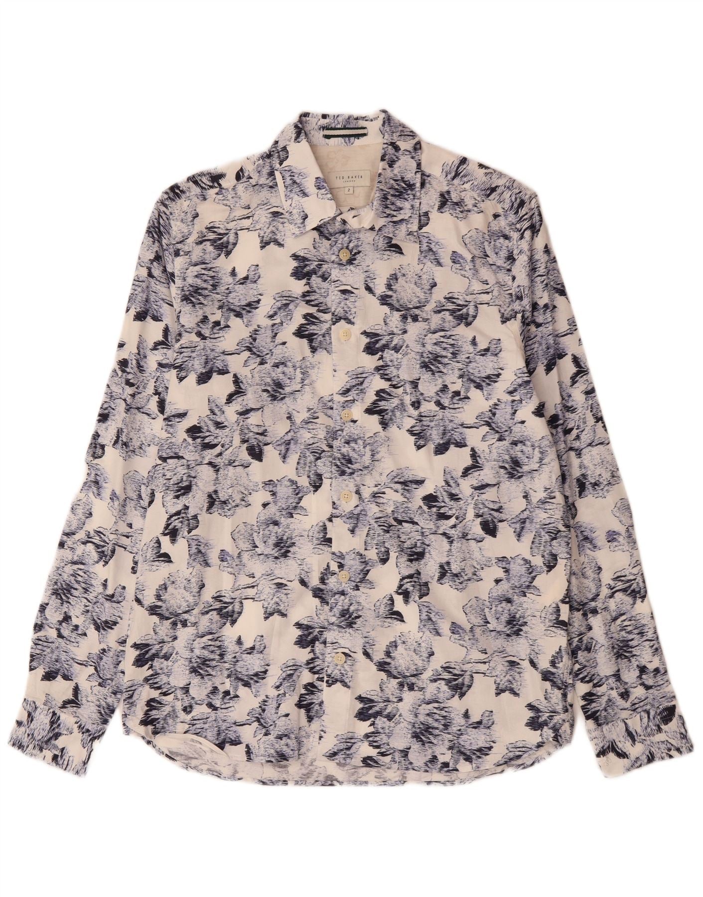 TED BAKER Chemise Homme Taille 2 Petit Coton Floral Blanc