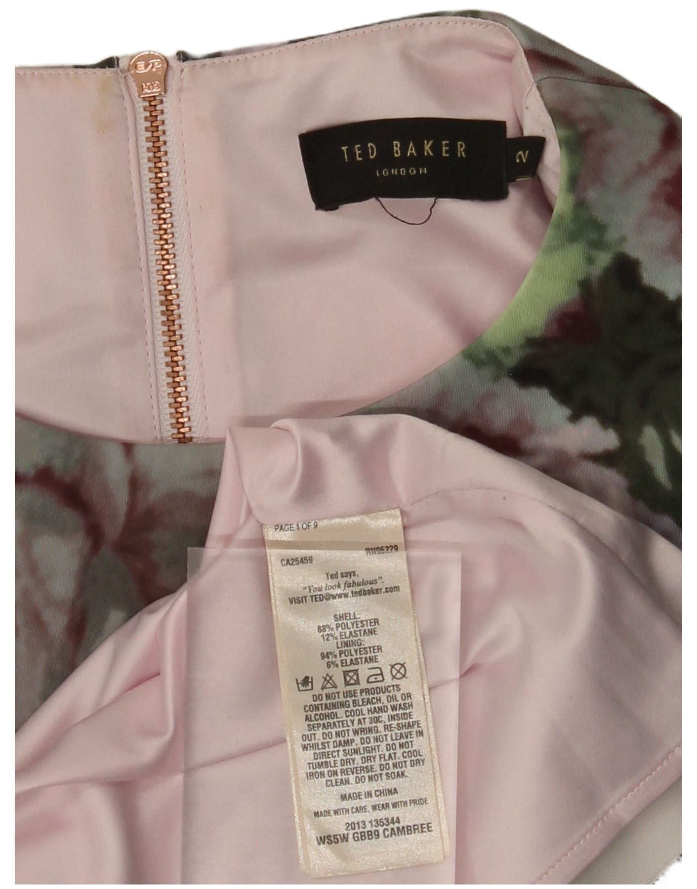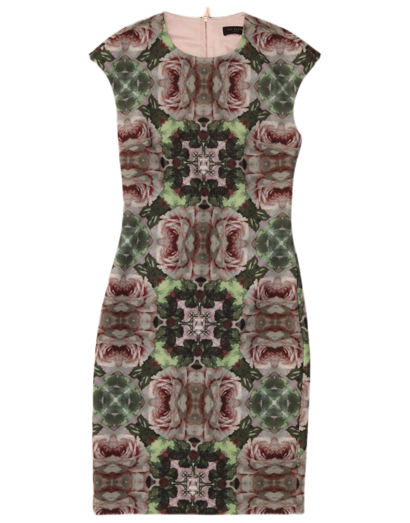 TED BAKER Robe fourreau pour femme Taille 2 Petit polyester floral multicolore