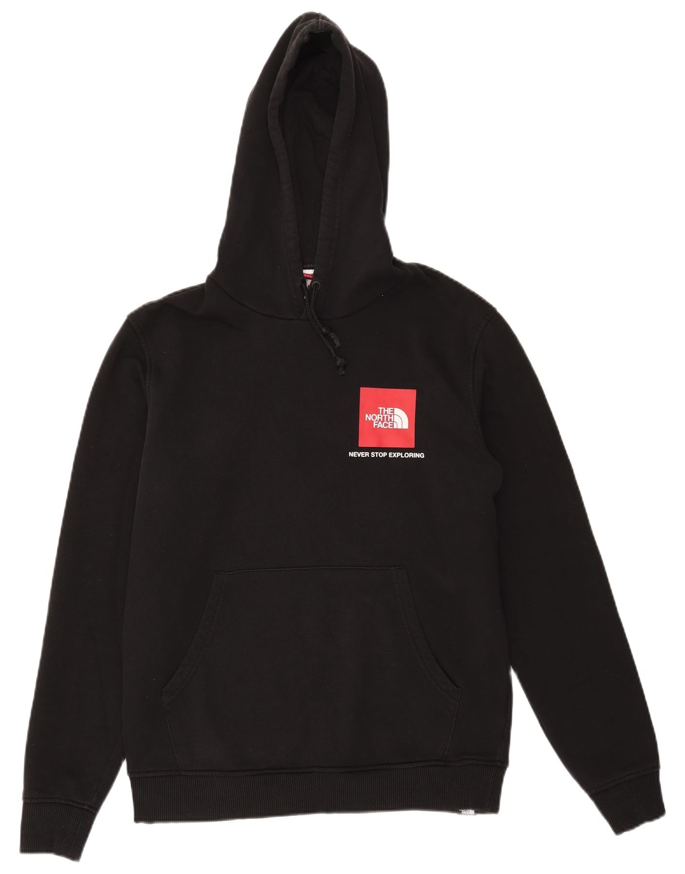 - Description de l'IA : Ce pull à capuche The North Face pour homme est confectionné dans un jersey de coton mélangé noir confortable. Il présente un design de pull classique avec une encolure à capuche et des manches longues. La coupe régulière assure une liberté de mouvement. Un logo en forme de boîte rouge proéminent orne la poitrine. Des manches à revers et une poche kangourou pratique complètent le design.