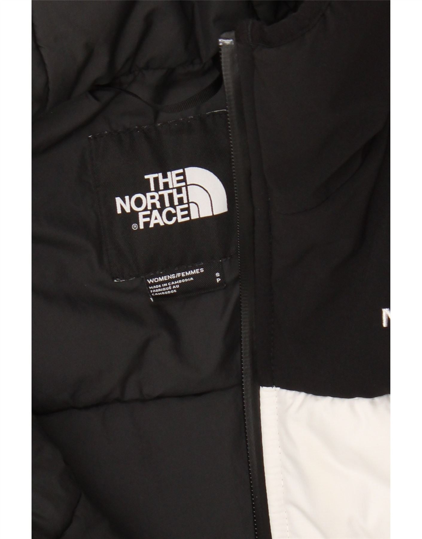 - Description de l'IA : Cette veste matelassée pour femme The North Face est confectionnée à partir d'un tissu mélangé avec une texture matelassée distincte. Il présente un design color block moderne en blanc et noir éclatant. La coupe régulière offre un port confortable. Un col haut et une fermeture éclair complète assurent la chaleur. Il comprend une capuche pratique et des poches zippées pour plus de fonctionnalité. Des manches longues complètent le design. Le logo emblématique de la marque ajoute une touche signature.