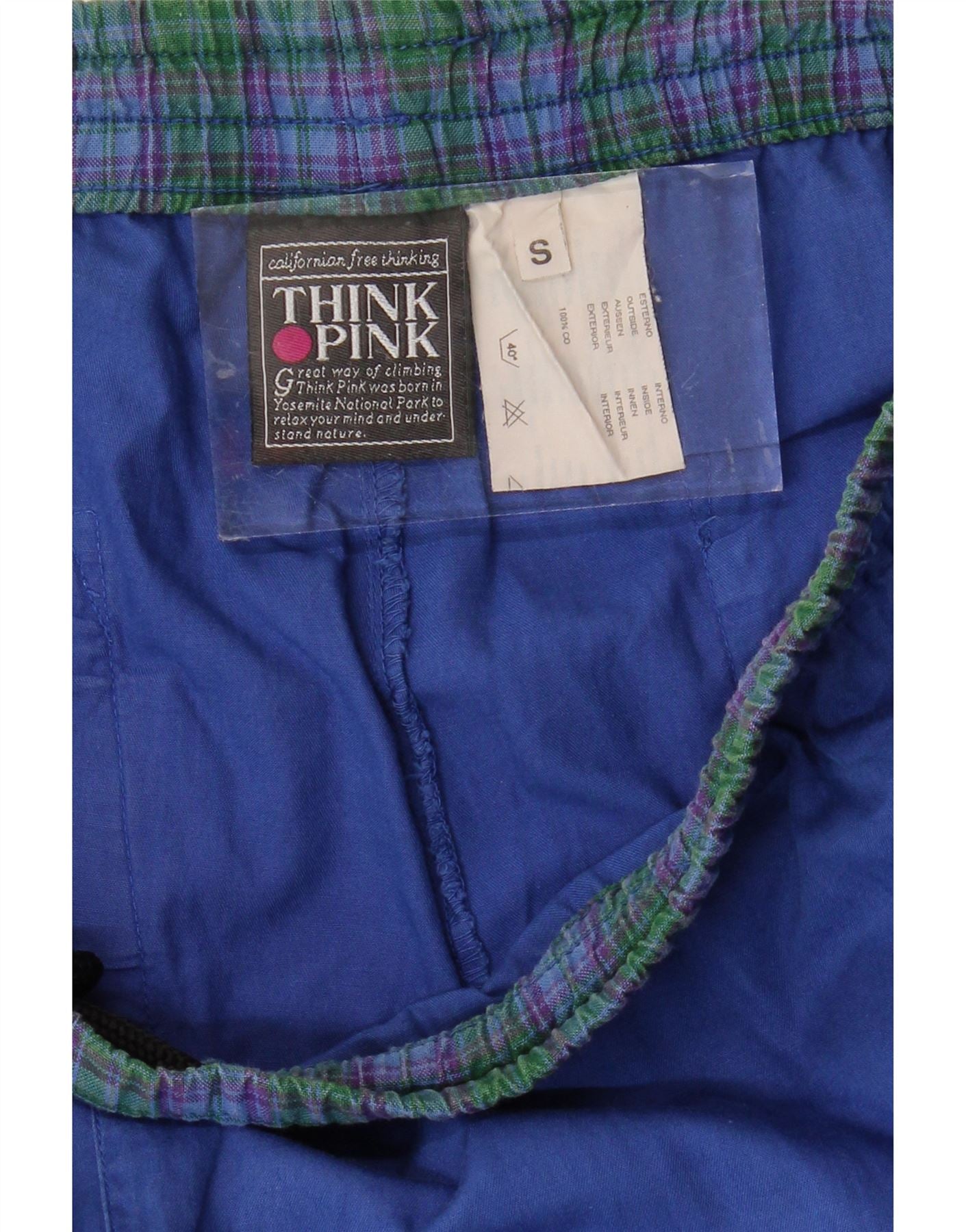 THINK PINK Pantalon Chino Graphique Calanque Homme Petit W29 L28 Bleu à Carreaux