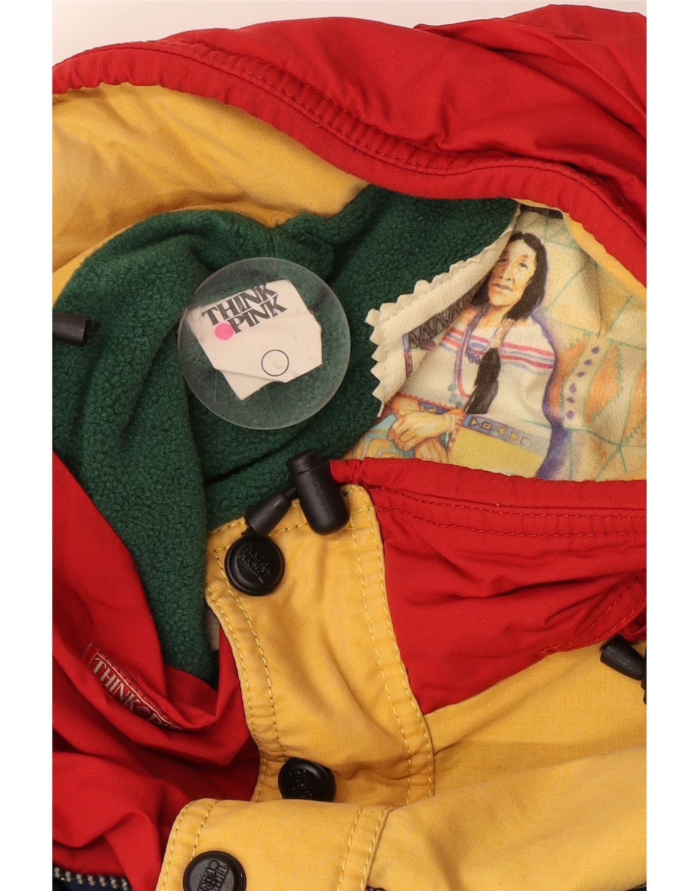 - Description de l'IA : Cette veste Anorak pour hommes Think Pink est fabriquée à partir d'un tissu tissé durable, présentant un design multicolore saisissant en jaune, bleu et rouge. Il présente une encolure à capuche et des manches longues, avec un style pull et une patte de boutonnage partielle. La coupe régulière assure confort et facilité de mouvement. Des poches pratiques sont incluses et un logo bien visible est visible. Le dos présente le lettrage POWWOW, ajoutant à son style ethnique distinctif.
