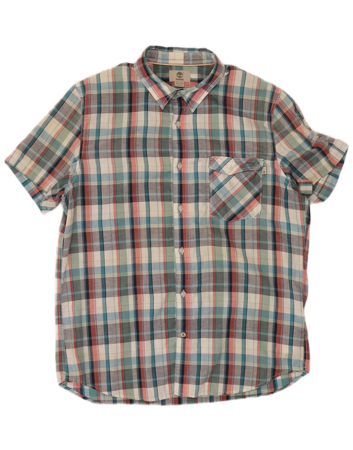 TIMBERLAND Chemise Slim Fit à Manches Courtes XL en Coton à Carreaux Multicolore pour Homme