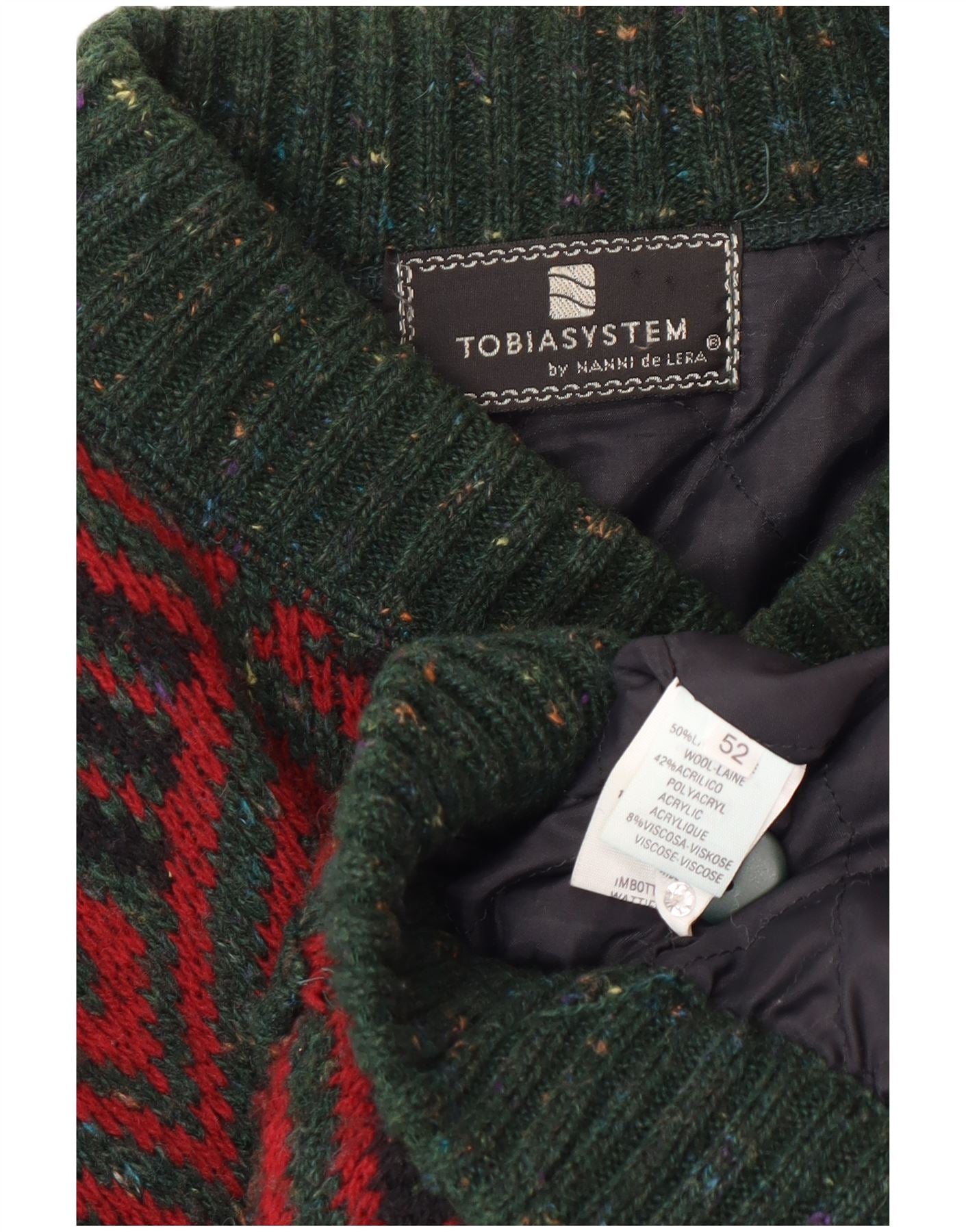Tobia System Pull Cardigan Homme IT 52 Grande Laine Géométrique Verte