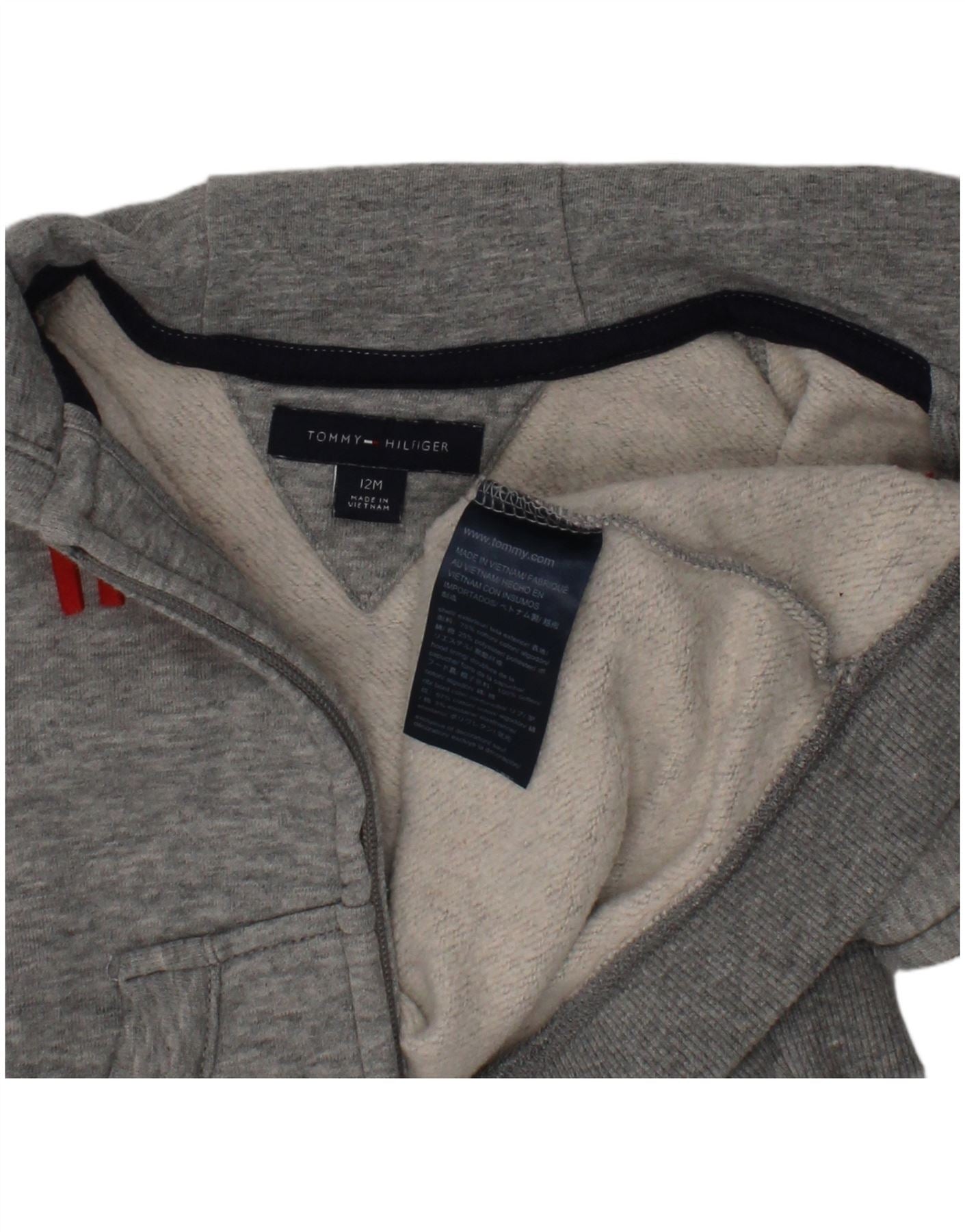 TOMMY HILFIGER Baby Boys Graphic Zip Neck Jumper Sweater 9-12 Months Grey