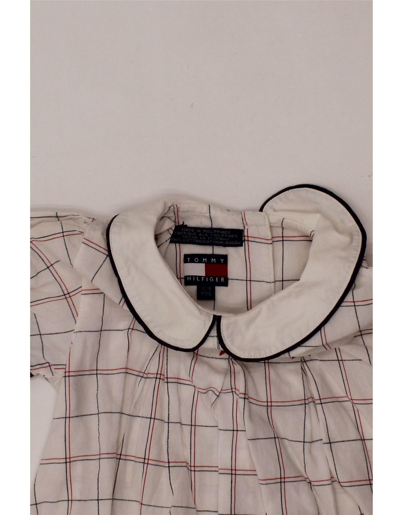 TOMMY HILFIGER Robe trapèze pour bébé fille 12-18 mois en coton à carreaux blancs