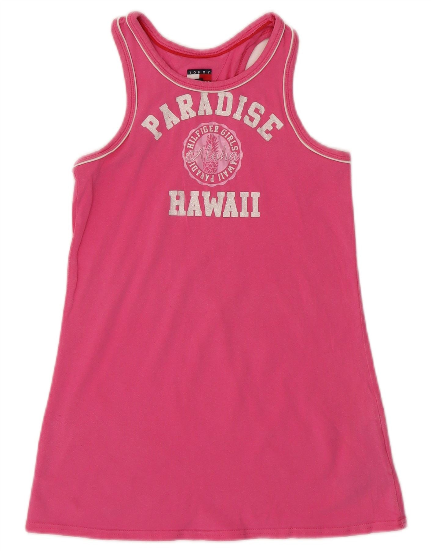 TOMMY HILFIGER Girls Hawaii Graphic Vest Top 11-12 Years Medium Pink