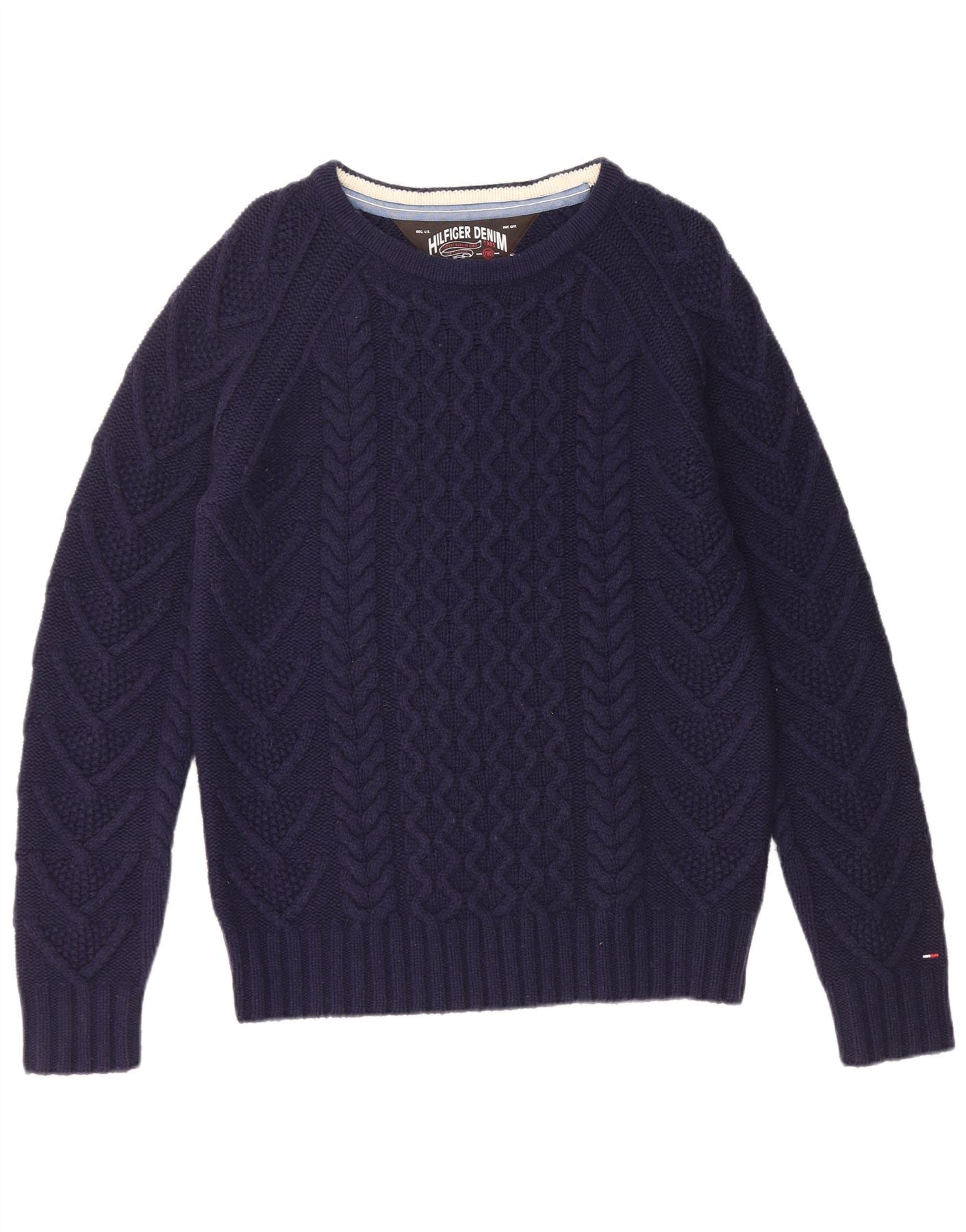 TOMMY HILFIGER Pull Col Bateau Homme Bleu Marine Moyen Laine d'Agneau