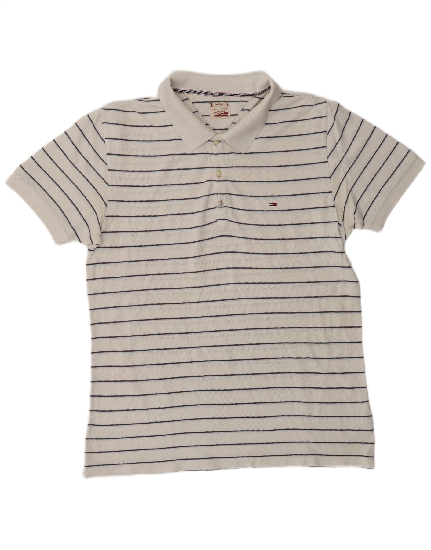 TOMMY HILFIGER Polo Classique Homme Grand Coton Rayé Blanc