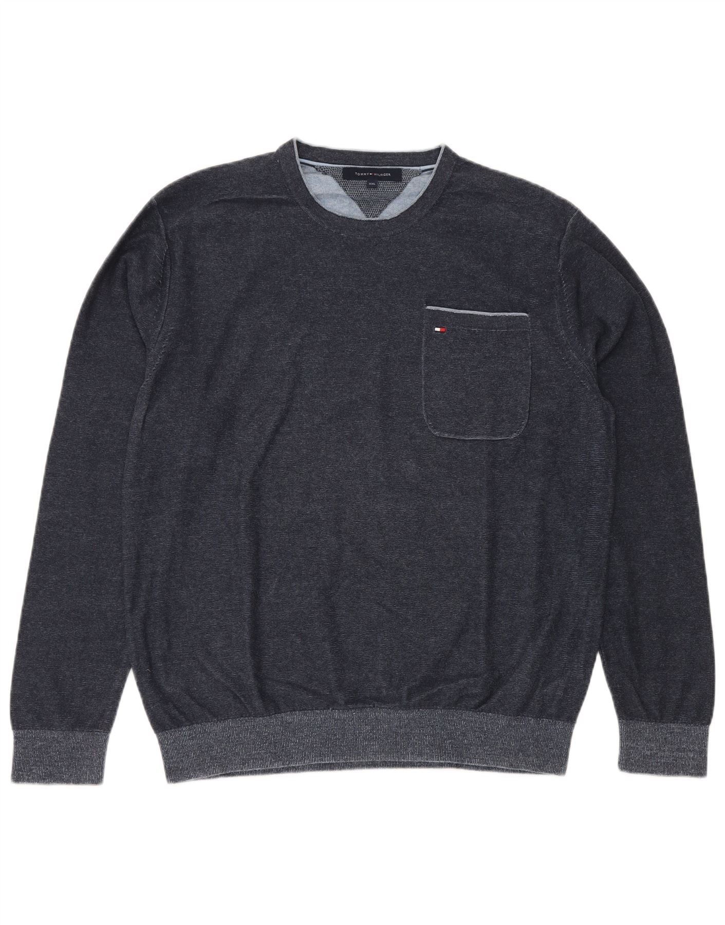 TOMMY HILFIGER Pull à col rond pour homme 2XL Bleu marine Coton