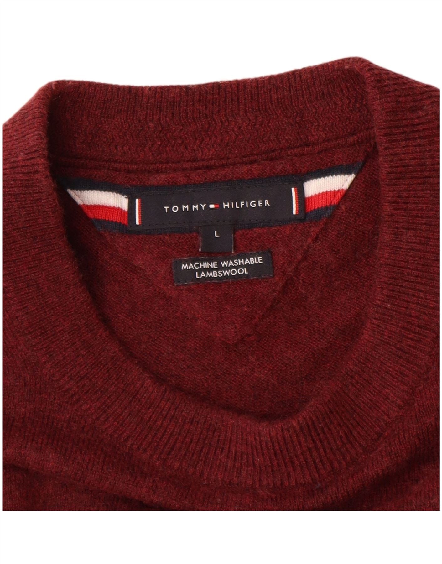 Tommy Hilfiger Pull à col rond pour homme en laine bordeaux Taille L