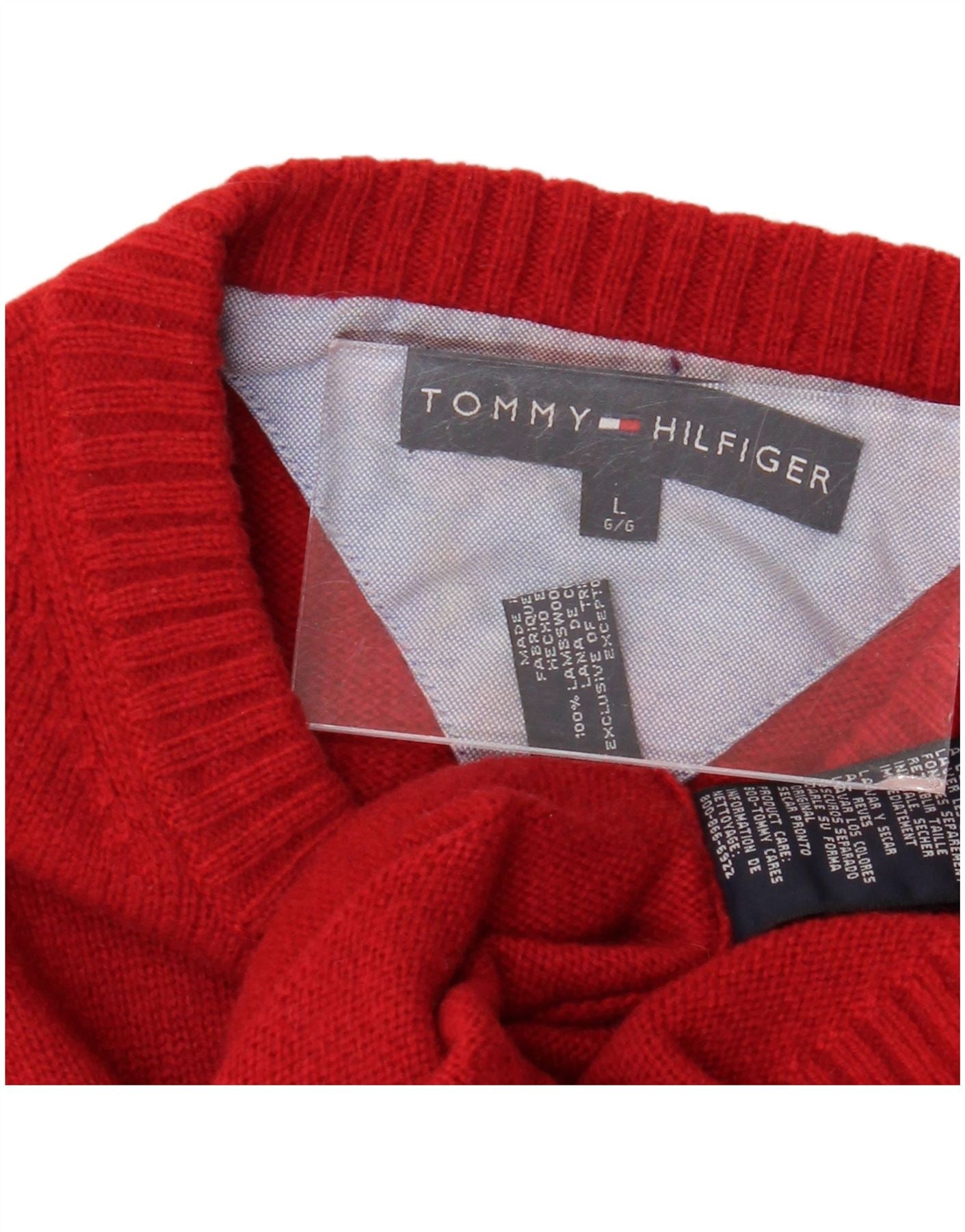 TOMMY HILFIGER Pull à col rond pour homme en laine rouge Large