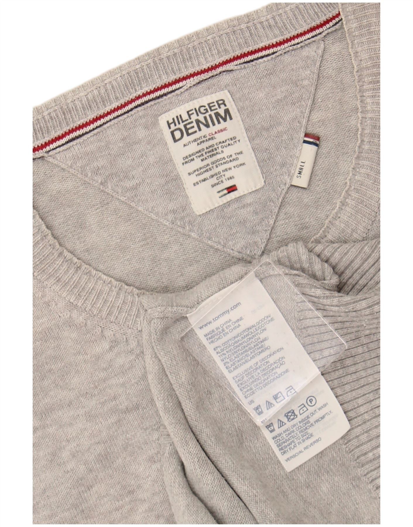 TOMMY HILFIGER Mens Crew Neck Jumper Sweater Small Grey Cotton