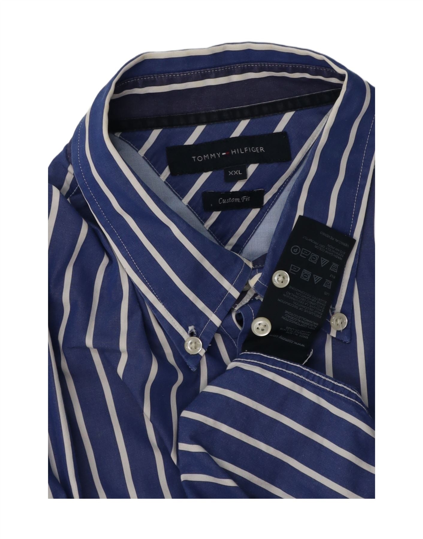 TOMMY HILFIGER Chemise sur mesure pour hommes 2XL Coton rayé bleu